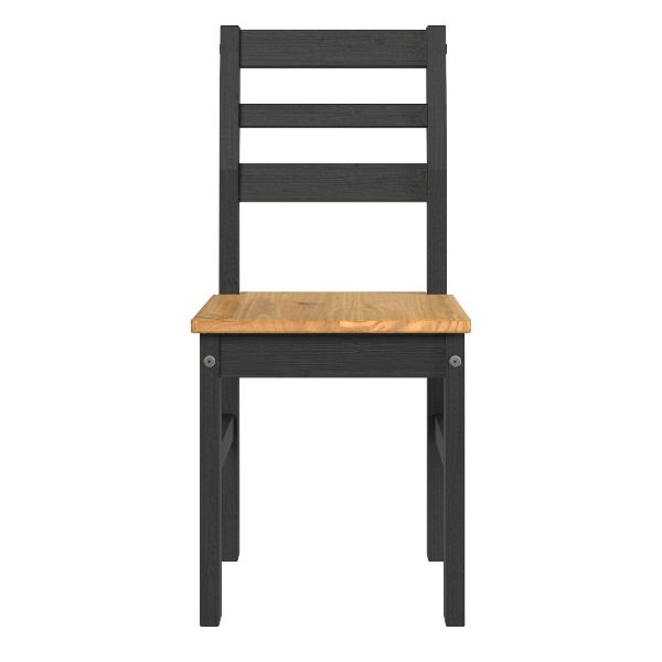 - Set includes four ladder back chairs with black wax frame and antique wax seat