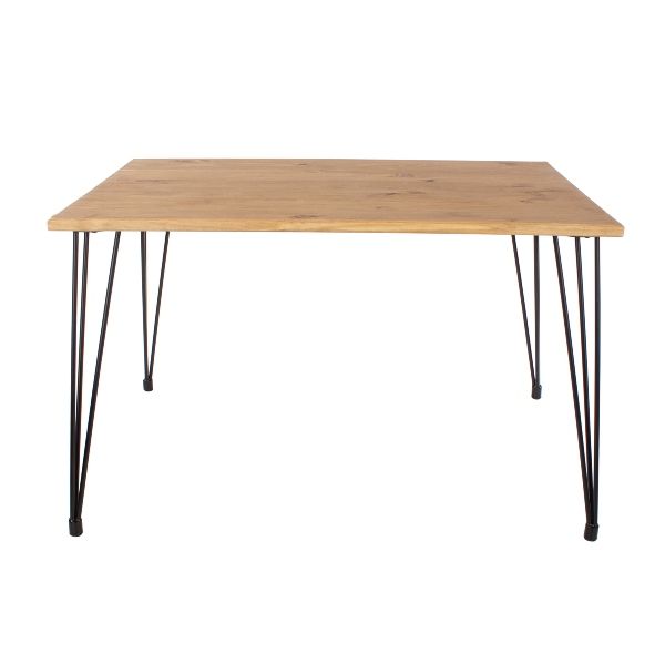 - Hardwearing black stove-painted metal hairpin design legs for durability