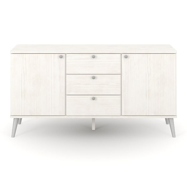 The Alessia Medium Sideboard with 2 Doors and 3 Drawers offers a perfect blend of storage and style for your living space. With two spacious doors and three drawers, this sideboard provides ample room to store various items such as dinnerware, linens, or other essentials. The clean white finish and silver handles complement modern or traditional decor themes seamlessly. Crafted from durable pine, this sideboard is built to last and withstand daily use. Elevate your home's storage solutions with the Alessia furniture range from Home Done.