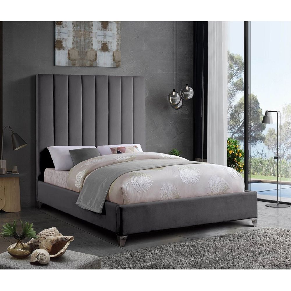This stunning 60inch headboard, featuring chunky upholstered panels, a deep foam padded headboard and hand carved and stylish metal feet quality solid straight slats improve comfort and mattress lifespan. The headboard features a contemporary design with deep padding and a plush finish. An elegant and modern design, this bed frame is sure to be crowd pleaser, made with the finest materials and finished with chrome legs.