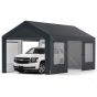 All-Weather Outdoor Car Shelter with 8 Removable Sidewalls and Roll-up Doors-Grey