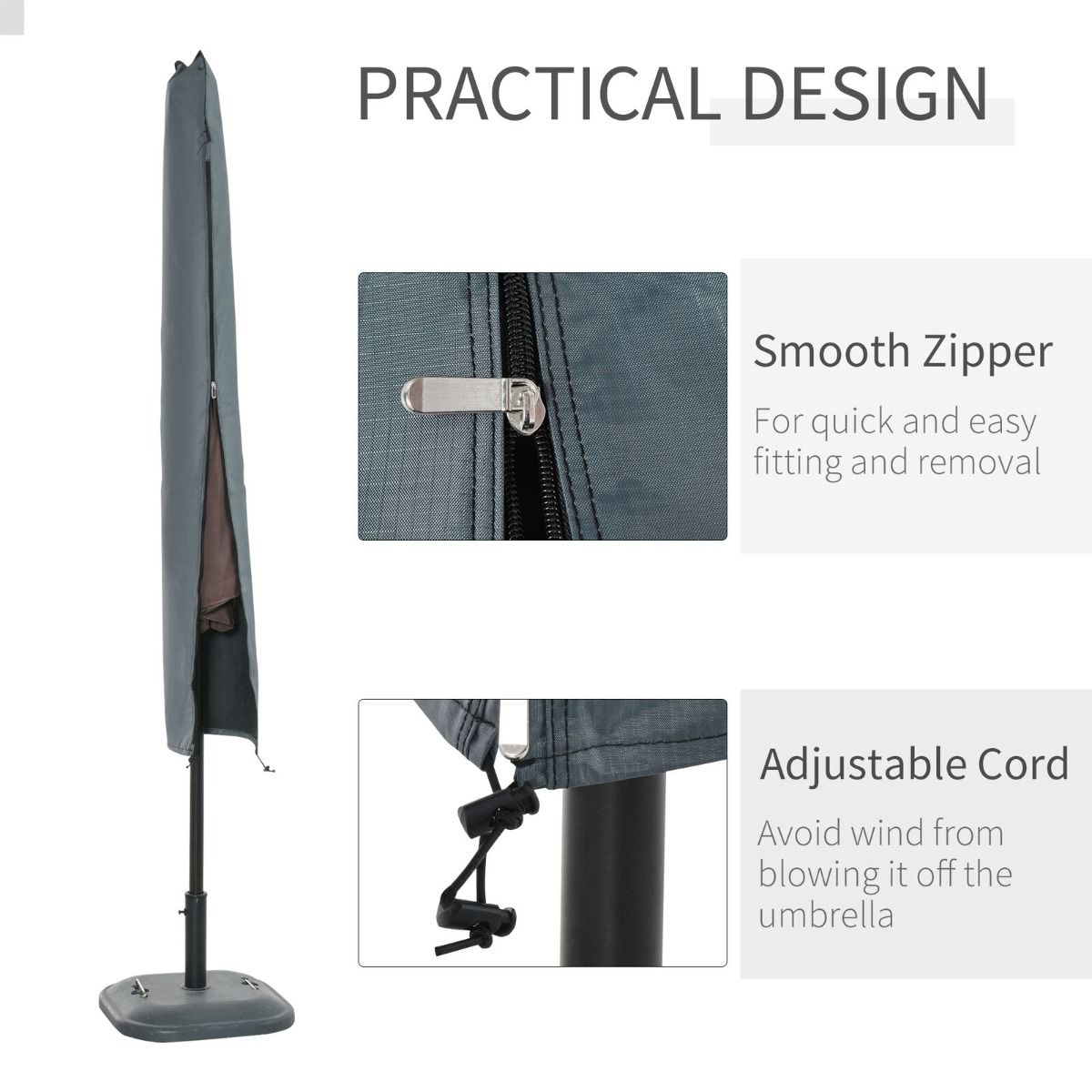 This offset umbrella cover is an ideal solution to protect your umbrella when not in use. Made from high density oxford fabric with a PU coating to protect from weather elements.