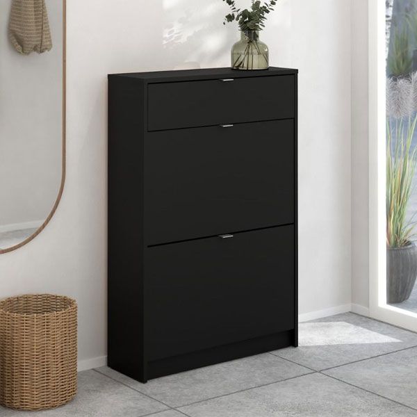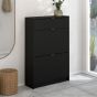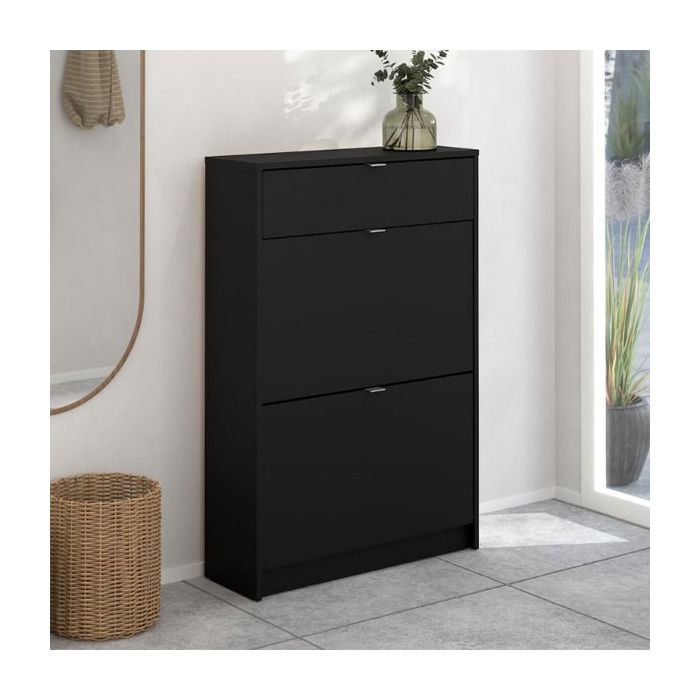 Introducing the Althoff Shoe Cabinet by Home Done, a stylish and space-saving solution for your footwear storage needs. This cabinet features two flip-down doors that reveal four compartments, allowing you to organize up to 12 pairs of shoes in two rows. The convenient drawer at the bottom is perfect for storing keys and accessories, keeping your entryway or living area tidy and clutter-free. With its simple yet effective design, the Althoff Shoe Cabinet blends seamlessly with modern interiors, making it an essential addition to any home. Easy self-assembly and high-quality materials ensure durability and ease of use.