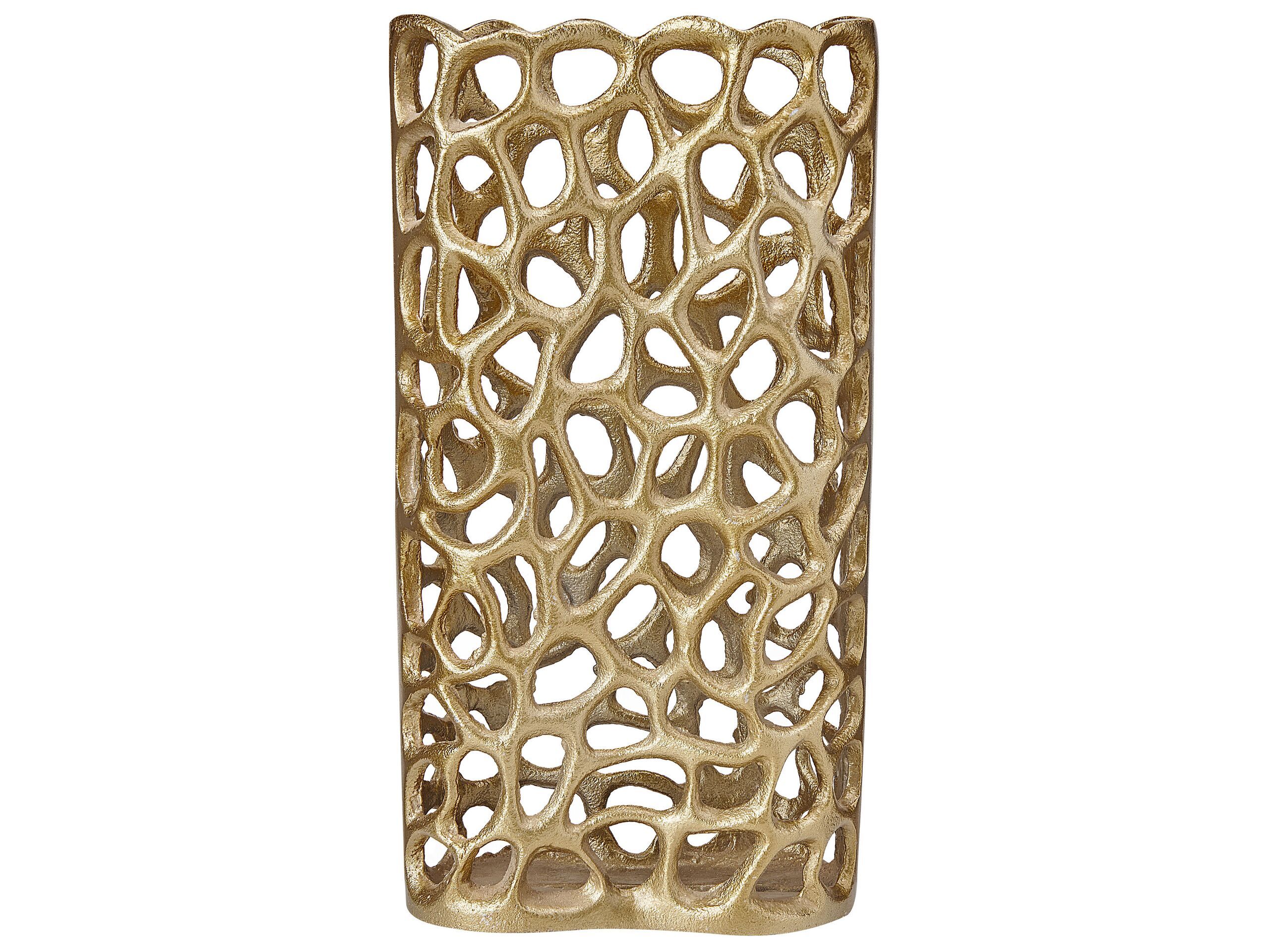 Bring in an elegant accent piece to upgrade the look of your living area. This eye-catching vase features a narrow, oblong shape in an intricate openwork design. Painted in gold, it makes a fantastic decorative accent for glam and vintage style interiors. Use it as a standalone piece, or pair with faux stems. Details: Color: Gold. Main material: Aluminium. Weight: 1 Assembly: Does Not Require Assembly
