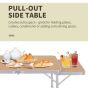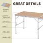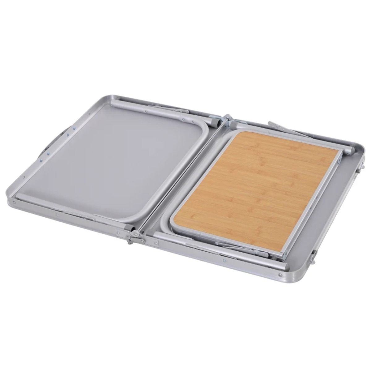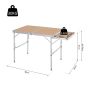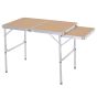 Ensure you have the perfect dining spot every time during your camping trips, picnics, festivals and other outdoors with this wonderful table. Foldable in design for easy portability, as well as adjustable to two different heights, it is made using an aluminium frame with four legs, making it lightweight, suitable for outdoor use and reliable, handling a weight up to 30kg – great for eating with your family and friends. With a main tabletop, which is covered an oak coloured MDF top for easy maintenance, it is finished with a small pull-out side table to provide extra holding/dining room if required. Folds into itself – no carry bag case required.