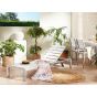 This modern sun lounger provides utter comfort thanks to a 4-position adjustable backrest. It is crafted from the all-weather plastic wood, which is durable and long-lasting. The clean lines and minimalist design blend beautifully with any modern patio, balcony or garden décor. Details: Color: White, Silver. Main material: Aluminium. Additional material: Plastic Wood. Weight: 16 Assembly: Partial Assembly Required Weight Capacity: 130 Legs Height: 29 Seat Height: 29