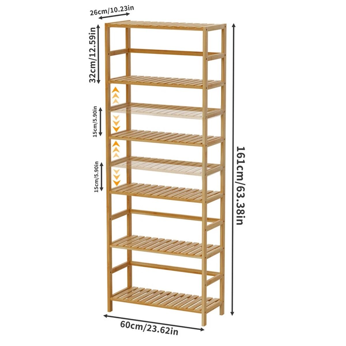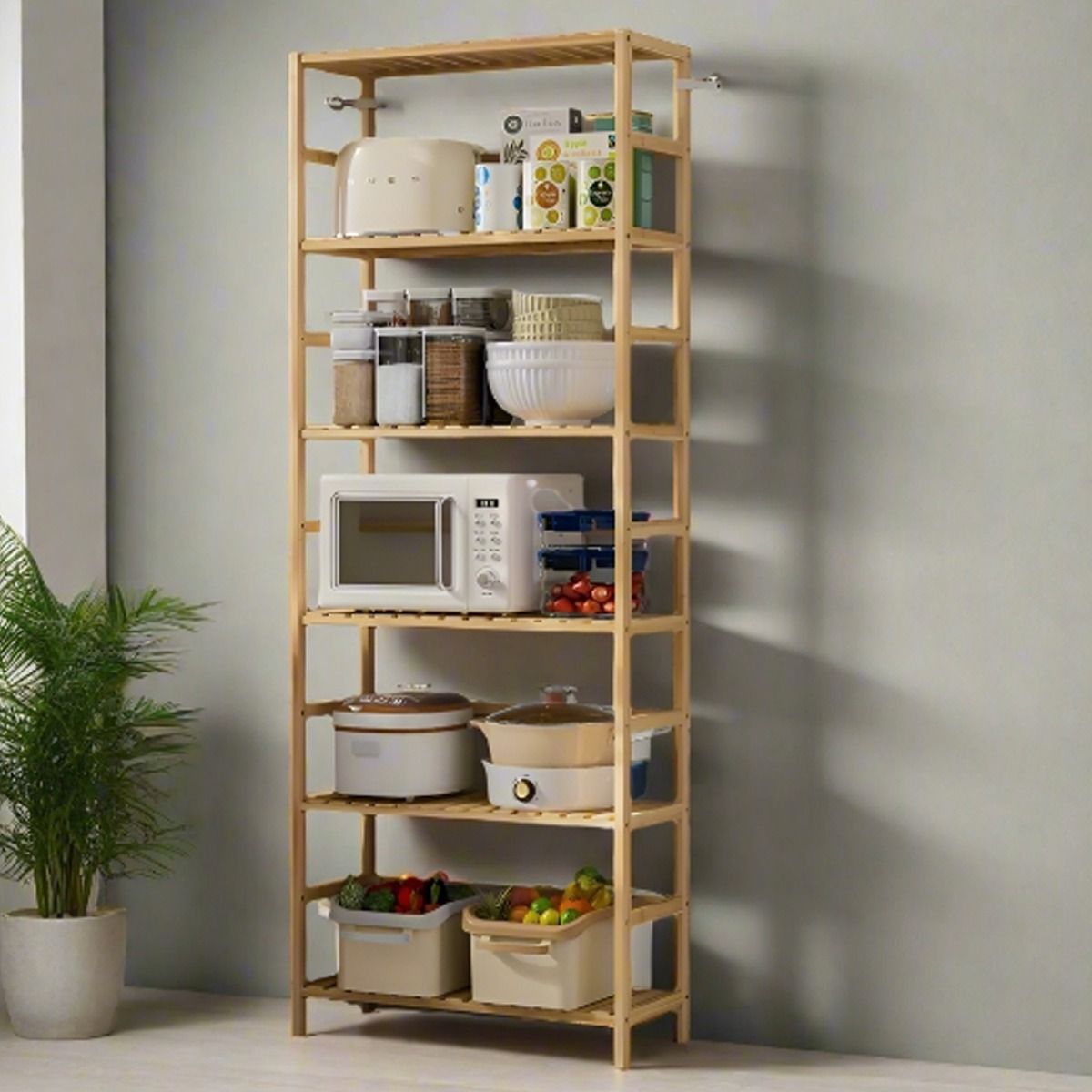 ALVERIX Bookshelf 6-Tier Bamboo Freestanding Adjustable Shelf Unit - Natural