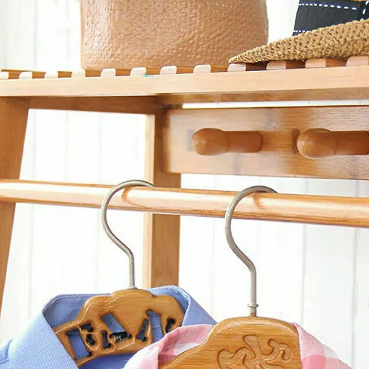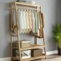 ALVERIX Clothes Rail Bamboo Rack with Top Shelf, Shoe Storage and 10 Hooks - Natural