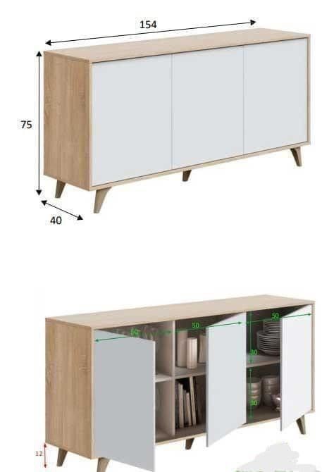 Amarentino White And Oak Effect 3 Door Wide Sideboard - White