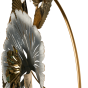 This unique wall decor captivates with an elegant combination of gold and silver, creating a luxurious accent. The central point of the composition is a large, golden leaf surrounded by smaller, geometric forms, all enclosed within a golden hoop. Made of durable metal, this decoration is perfect for a living room, bedroom, or office.