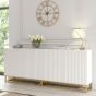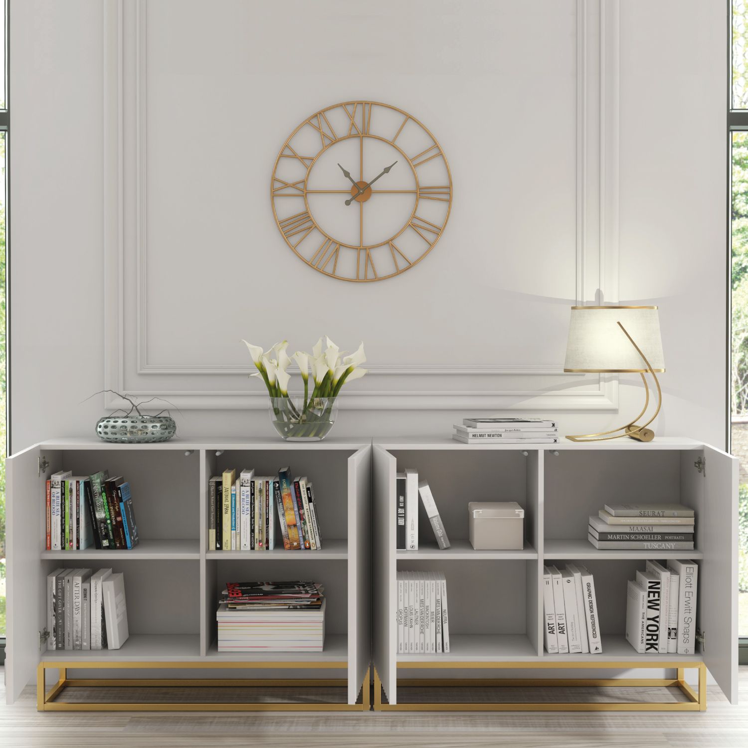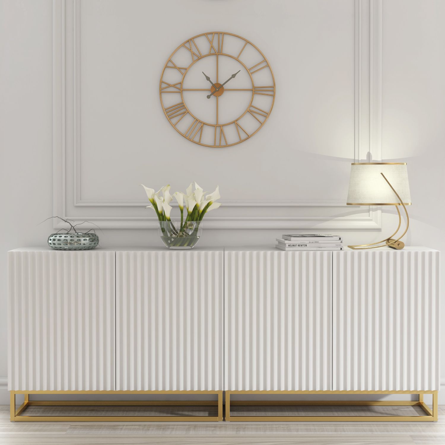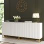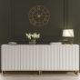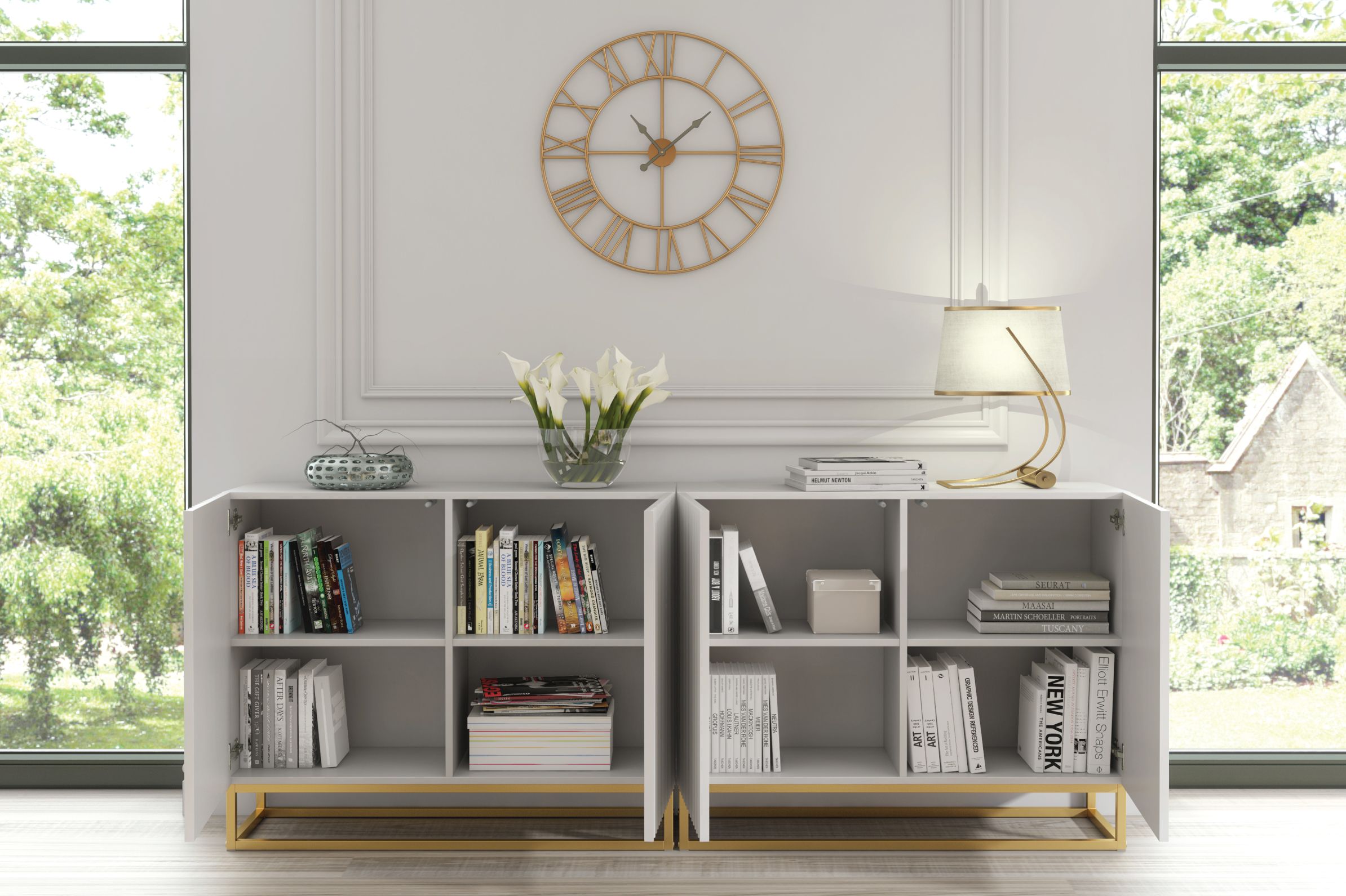 The ANCONA Duo Sideboard is the perfect solution for those who need extra storage and a bold statement piece, consisting of two ANCONA Sideboard units that together provide 200cm of stylish storage while maintaining the same sleek and elegant design. Both units can be placed side by side for a seamless extended sideboard, ideal for larger spaces, or positioned separately in different areas of your home for a cohesive yet versatile look. Each unit measures 100cm (W) x 80cm (H) x 35cm (D) and is crafted from high-quality MDF and chipboard, featuring a wave-textured front for a modern and sophisticated touch. The gold metal base adds a luxurious contrast, while the push-to-open doors ensure effortless access to your belongings. Inside, each sideboard is divided by a central shelf, providing well-organized storage. Available in White, Black, and Dark Grey, the ANCONA Duo Sideboard is a perfect blend of modern elegance and practical functionality, bringing effortless sophistication to any home, whether placed together or apart. This offer includes two units of the ANCONA Sideboard.
