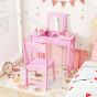 ANLO 2 in 1 Kids Vanity Table and Chair Set with Flip Top Mirror Hidden Storage-Pink