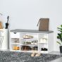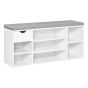 ANWI Shoe Bench with Seat Cushion Shoe Storage Cabinet with 7 Compartments Drawer Adjustable Shelves for Entryway Hallway Living Room White and Grey
