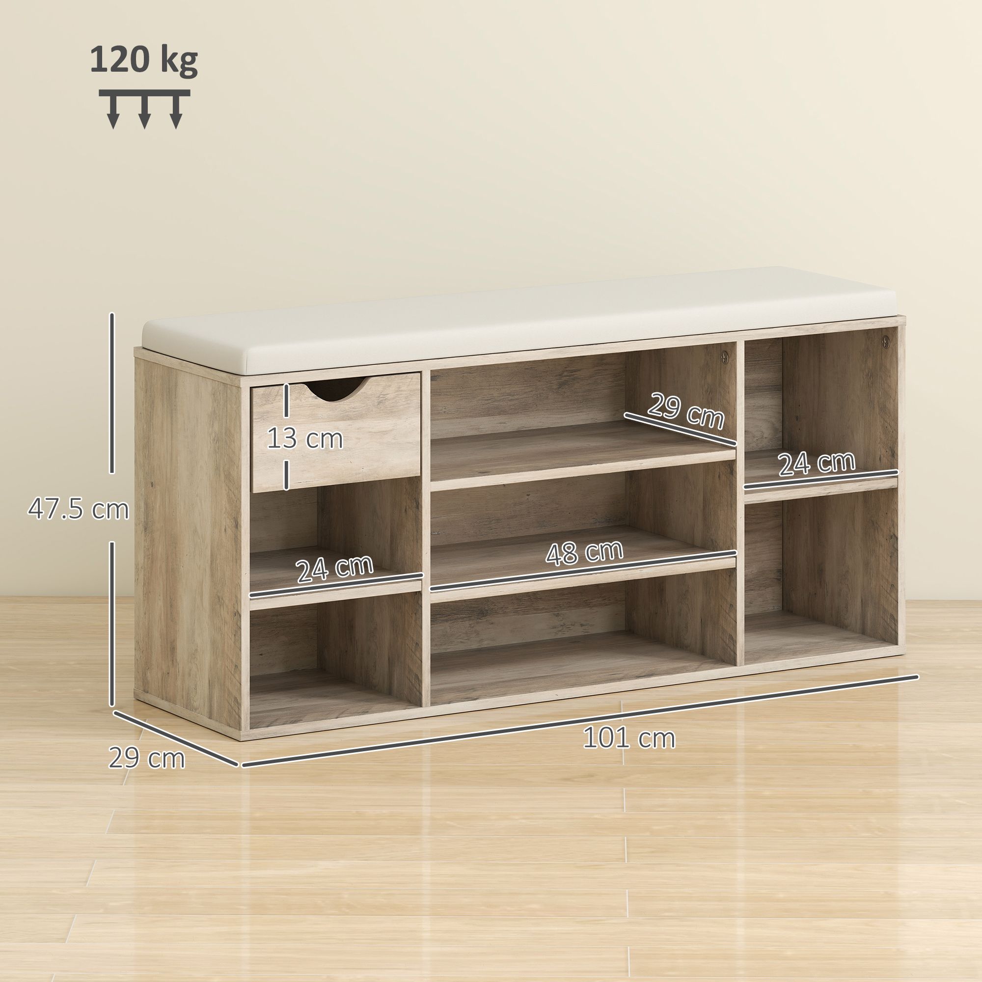 Are you looking for an entryway storage bench that can hold all your shoes? Worried that nowhere to sit to change shoes? This modern styled shoe organiser will be your optimal choice. This shoe rack has a thick padded cushion to provide you a comfortable experience. Features large capacity to accommodate 10 pairs of shoes (standard size). Besides, the middle shelves on left and right side are adjustable to store shoes of different sizes and types. So don't hesitate and take it home now!