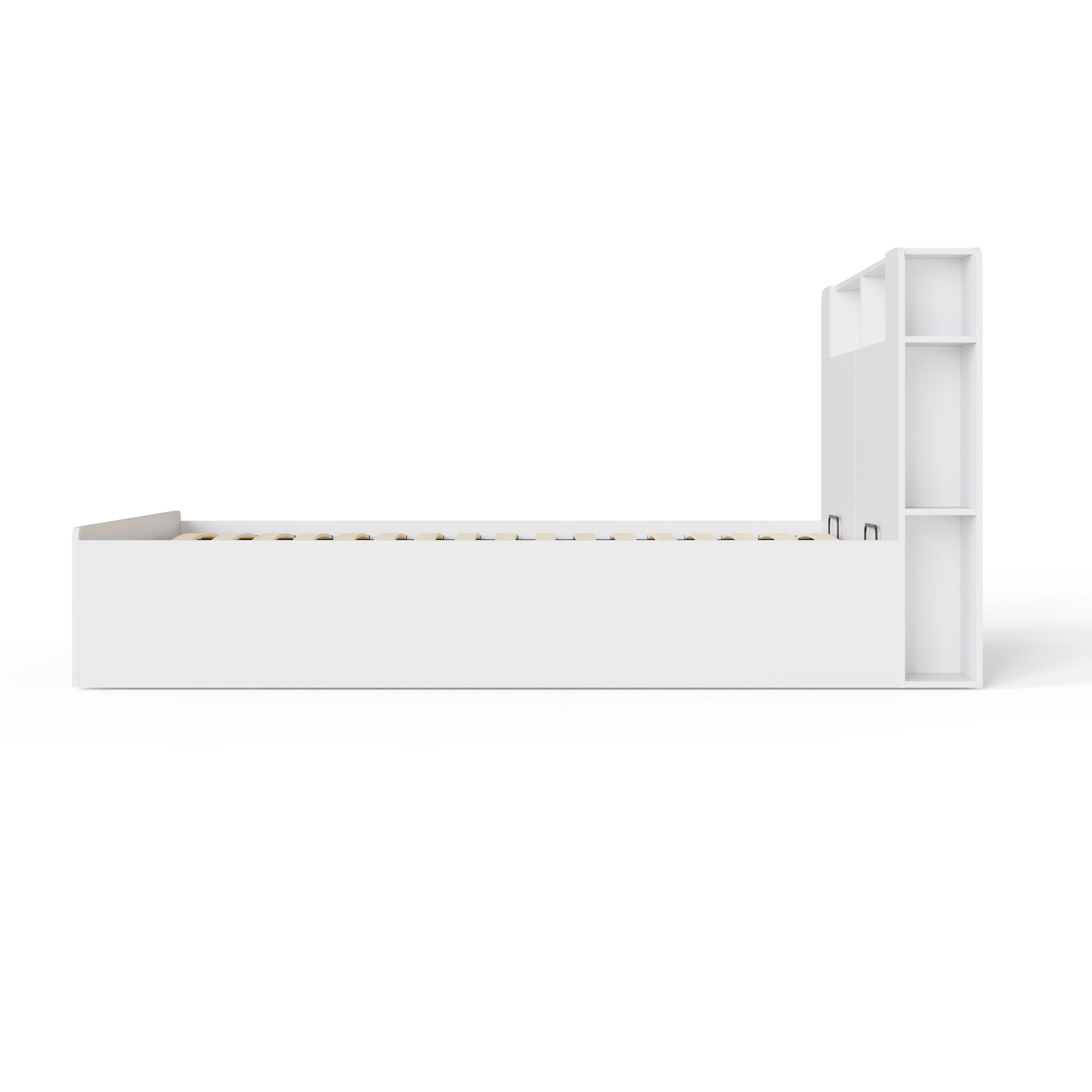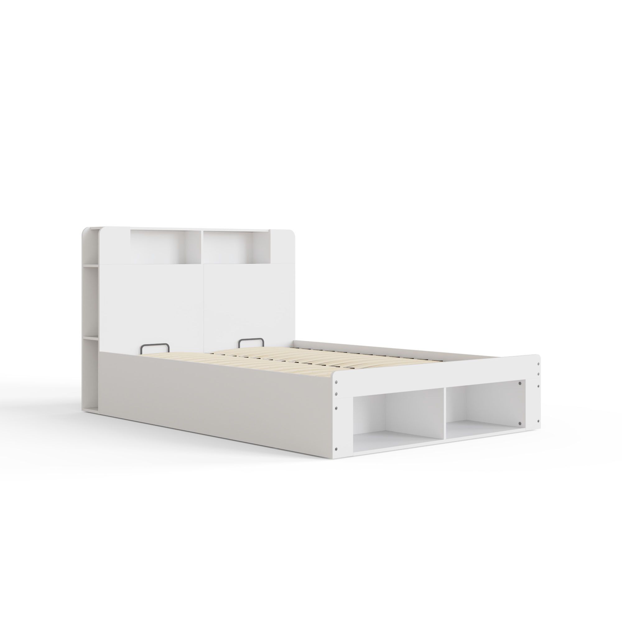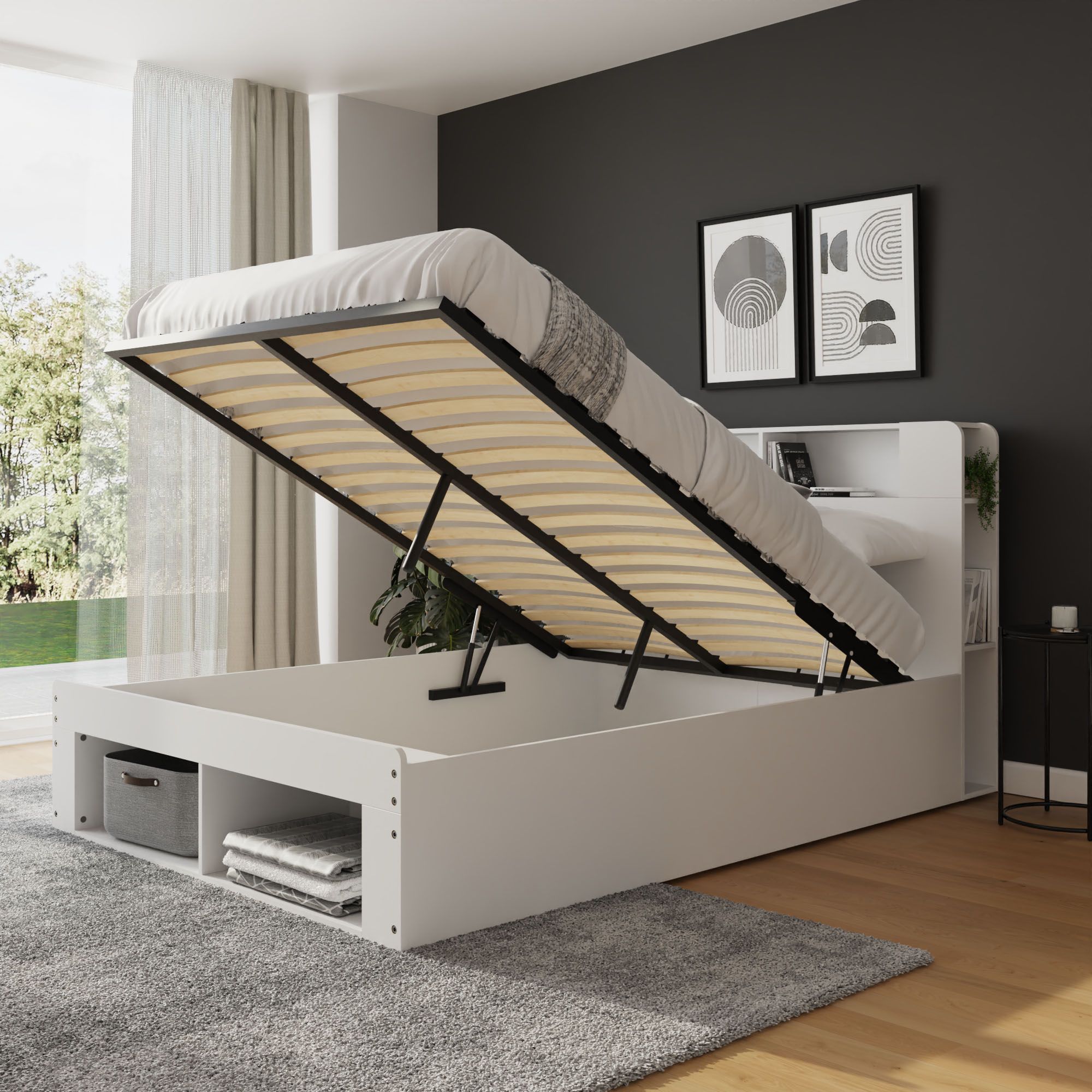 ANYON Double Ottoman Bed with Bookcase Headboard and Storage - White