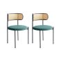 Embark on a journey through time with this duo of metal-crafted chairs, where industrial strength meets retro finesse. Luxuriate in the embrace of fabric seats and backrests adorned with Viennese braid—a fusion of comfort and vintage elegance. With thoughtful leg caps, these chairs dance gracefully across surfaces, ensuring your floors remain untouched. Channelling nostalgia, these pieces redefine your space, transforming it into a haven where the past and present harmonize effortlessly.