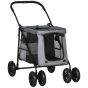 One Click Foldable Pet Stroller Dog Cat Travel Pushchair with EVA Wheels Storage Bags Mesh Windows Safety Leash Cushion for Small Pets Grey