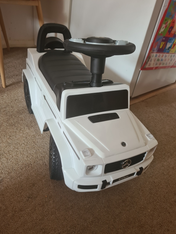 Aosom Compatible Baby Push Handle Sliding Car Mercedes-Benz G350 Licensed Foot to Floor Slider Stroller w/ Horn Under Seat Storage White