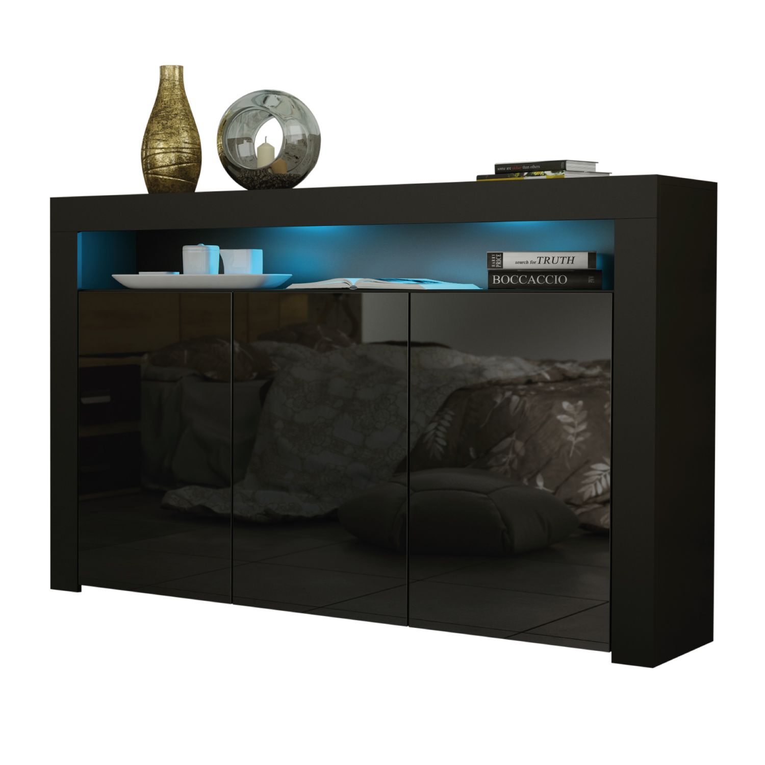 The APEX Sideboard brings modern sophistication to your living space, seamlessly blending style and practicality into a statement piece. Measuring 155cm (W) x 92cm (H) x 40cm (D), this sideboard offers generous storage capacity while enhancing the aesthetic appeal of your home. The matte-finished body is paired with sleek doors, available in various finishes to complement any interior style. Featuring three push-to-open doors, the APEX Sideboard provides easy access to spacious internal compartments, each fitted with a shelf to keep your items neatly organized. Please note: the Oak with Black version features matte black doors, providing a subtle and stylish alternative to the glossy finishes in other color combinations. Crafted from premium 16mm chipboard and MDF, the APEX Sideboard is designed for durability and long-lasting elegance, ensuring it remains a standout feature in your home. Available in White & Gloss Doors, White & Grey Gloss Doors, Black & Gloss Doors, Walnut & Black Gloss Doors, Oak & White Gloss Doors, Oak & Black Matt Doors, and Dark Grey & Gloss Doors, the APEX Sideboard is the perfect blend of function and modern design.