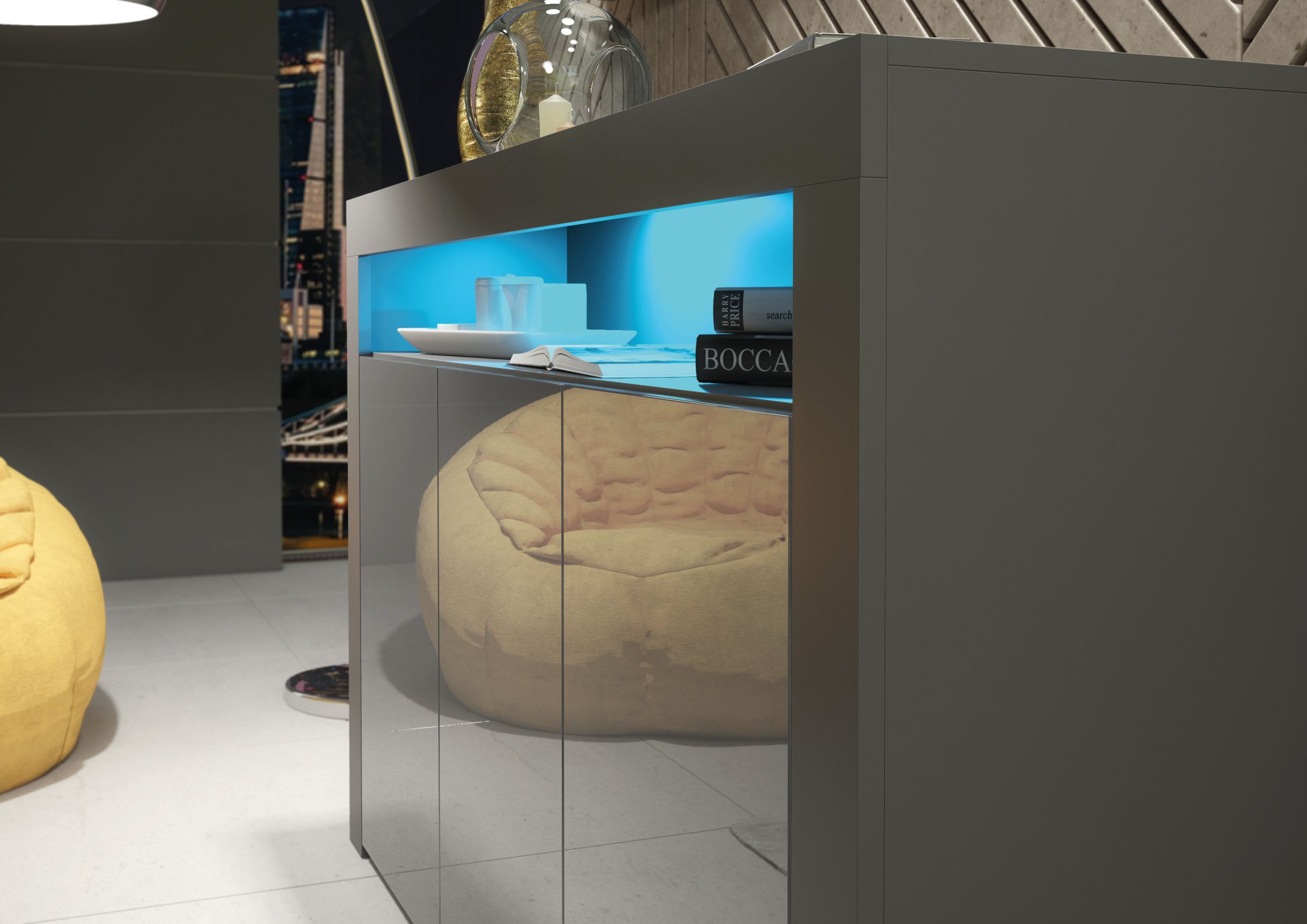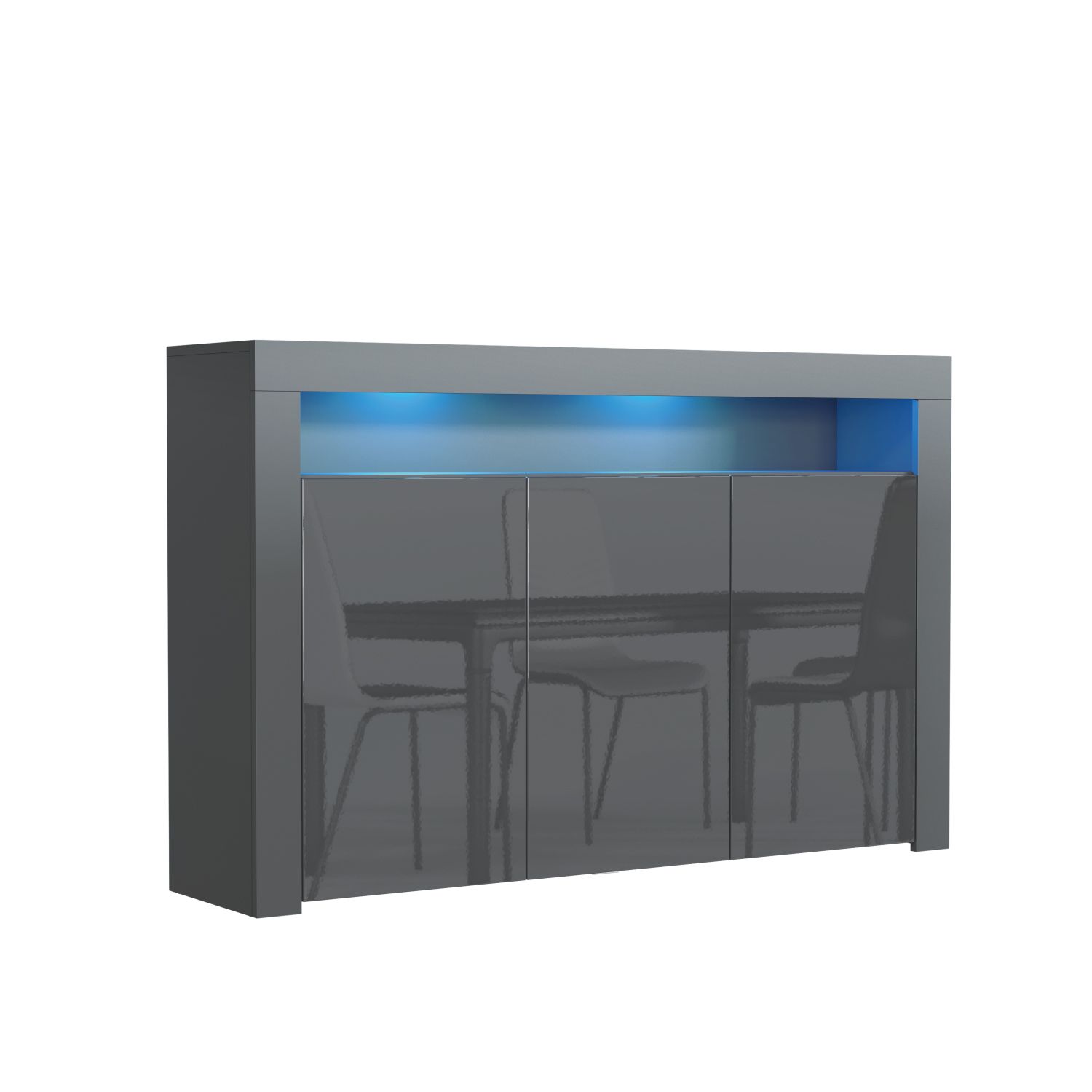 The APEX Sideboard brings modern sophistication to your living space, seamlessly blending style and practicality into a statement piece. Measuring 155cm (W) x 92cm (H) x 40cm (D), this sideboard offers generous storage capacity while enhancing the aesthetic appeal of your home. The matte-finished body is paired with sleek doors, available in various finishes to complement any interior style. Featuring three push-to-open doors, the APEX Sideboard provides easy access to spacious internal compartments, each fitted with a shelf to keep your items neatly organized. Please note: the Oak with Black version features matte black doors, providing a subtle and stylish alternative to the glossy finishes in other color combinations. Crafted from premium 16mm chipboard and MDF, the APEX Sideboard is designed for durability and long-lasting elegance, ensuring it remains a standout feature in your home. Available in White & Gloss Doors, White & Grey Gloss Doors, Black & Gloss Doors, Walnut & Black Gloss Doors, Oak & White Gloss Doors, Oak & Black Matt Doors, and Dark Grey & Gloss Doors, the APEX Sideboard is the perfect blend of function and modern design.