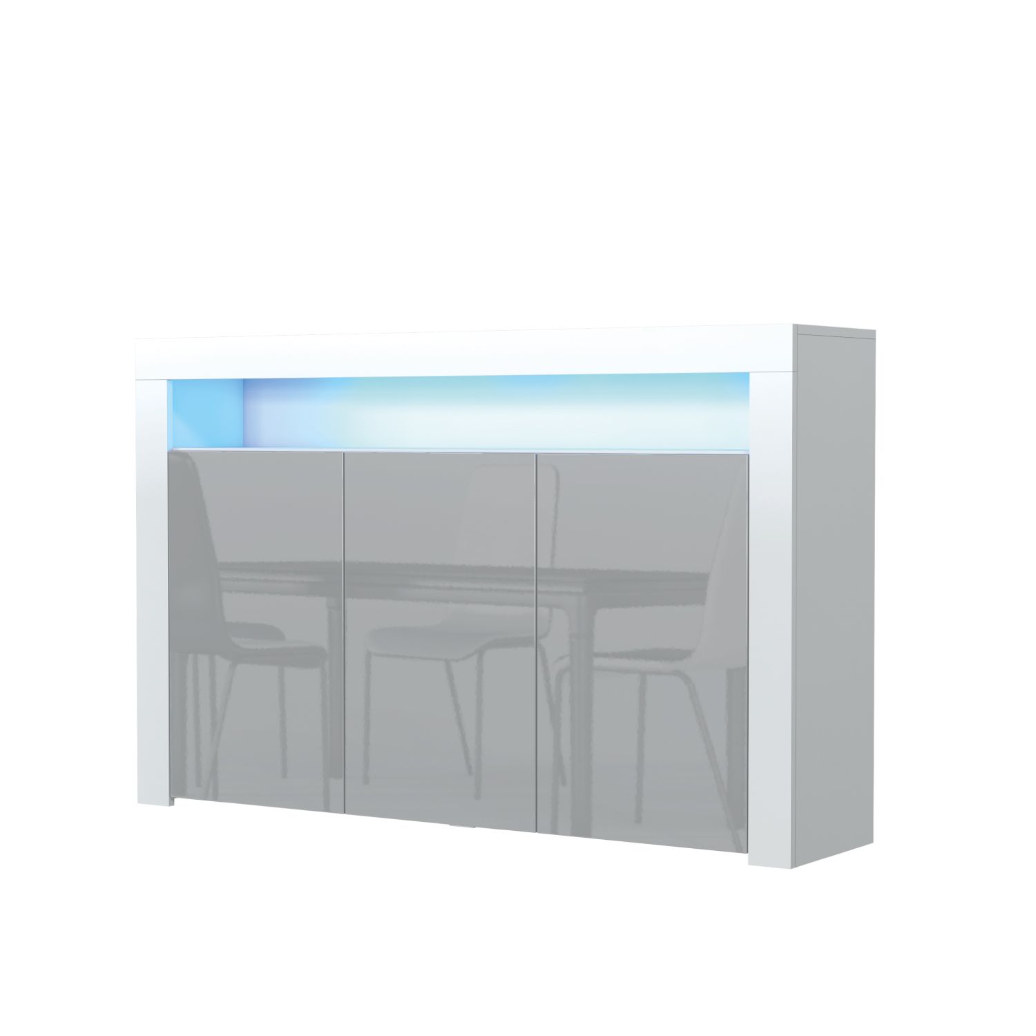 The APEX Sideboard brings modern sophistication to your living space, seamlessly blending style and practicality into a statement piece. Measuring 155cm (W) x 92cm (H) x 40cm (D), this sideboard offers generous storage capacity while enhancing the aesthetic appeal of your home. The matte-finished body is paired with sleek doors, available in various finishes to complement any interior style. Featuring three push-to-open doors, the APEX Sideboard provides easy access to spacious internal compartments, each fitted with a shelf to keep your items neatly organized. Please note: the Oak with Black version features matte black doors, providing a subtle and stylish alternative to the glossy finishes in other color combinations. Crafted from premium 16mm chipboard and MDF, the APEX Sideboard is designed for durability and long-lasting elegance, ensuring it remains a standout feature in your home. Available in White & Gloss Doors, White & Grey Gloss Doors, Black & Gloss Doors, Walnut & Black Gloss Doors, Oak & White Gloss Doors, Oak & Black Matt Doors, and Dark Grey & Gloss Doors, the APEX Sideboard is the perfect blend of function and modern design.