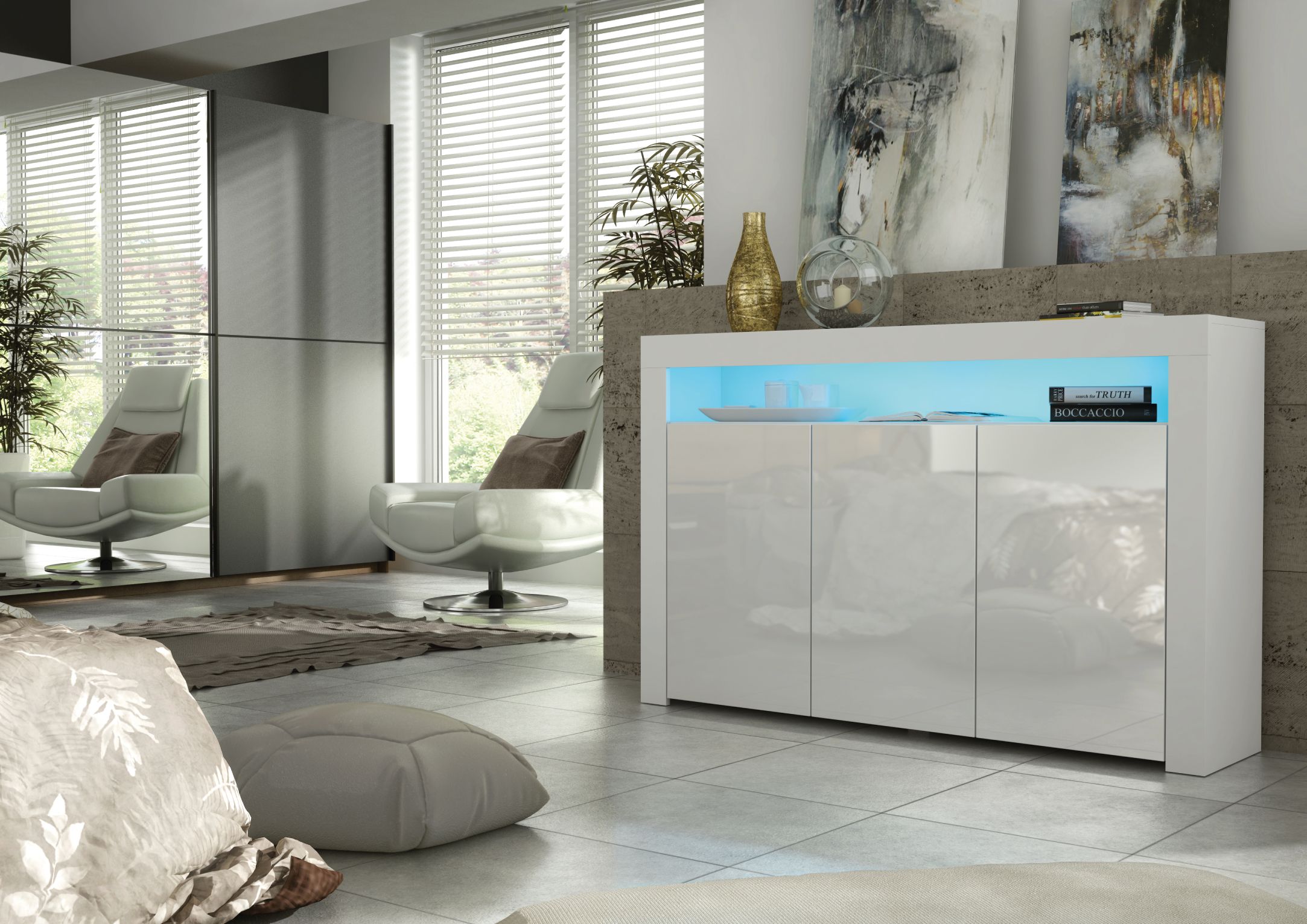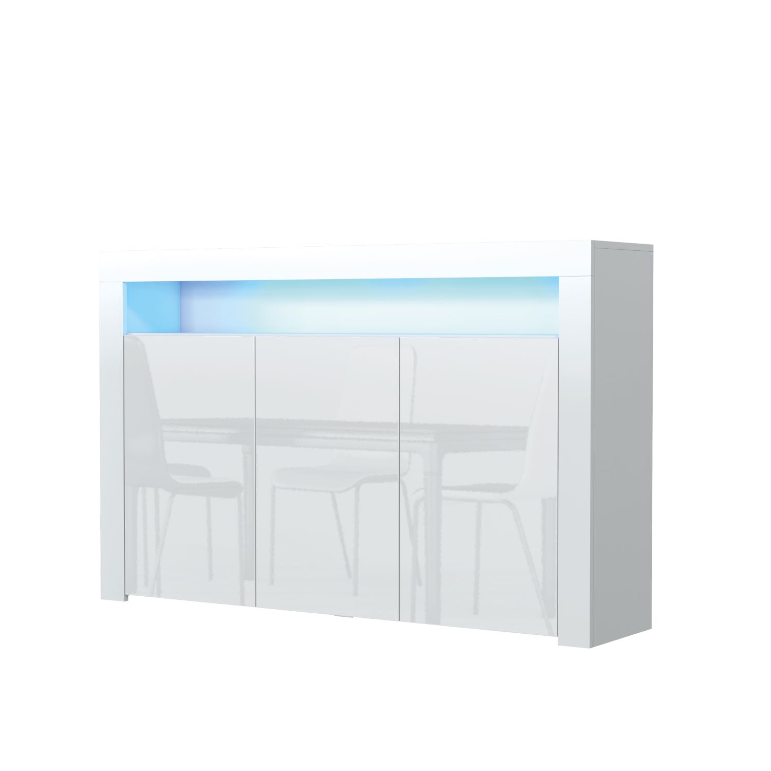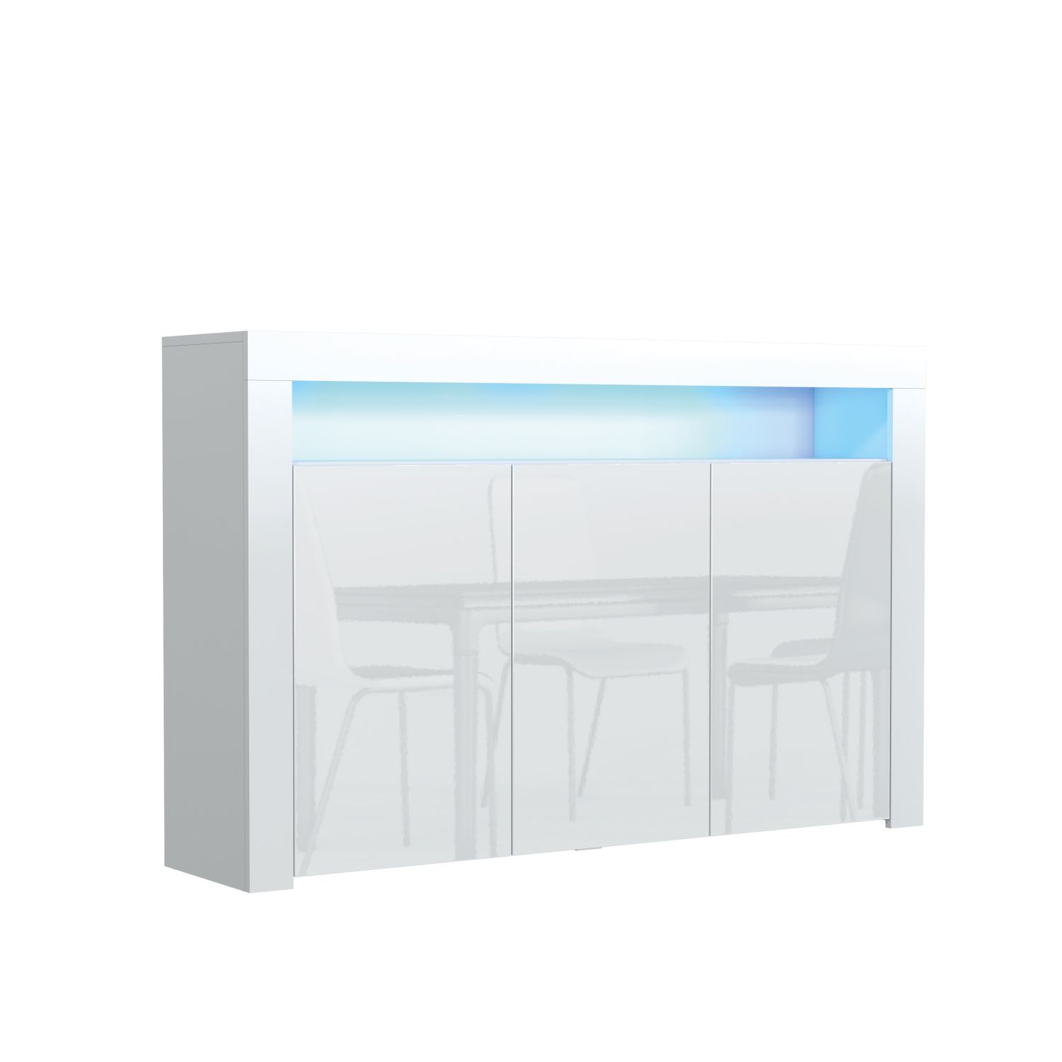The APEX Sideboard brings modern sophistication to your living space, seamlessly blending style and practicality into a statement piece. Measuring 155cm (W) x 92cm (H) x 40cm (D), this sideboard offers generous storage capacity while enhancing the aesthetic appeal of your home. The matte-finished body is paired with sleek doors, available in various finishes to complement any interior style. Featuring three push-to-open doors, the APEX Sideboard provides easy access to spacious internal compartments, each fitted with a shelf to keep your items neatly organized. Please note: the Oak with Black version features matte black doors, providing a subtle and stylish alternative to the glossy finishes in other color combinations. Crafted from premium 16mm chipboard and MDF, the APEX Sideboard is designed for durability and long-lasting elegance, ensuring it remains a standout feature in your home. Available in White & Gloss Doors, White & Grey Gloss Doors, Black & Gloss Doors, Walnut & Black Gloss Doors, Oak & White Gloss Doors, Oak & Black Matt Doors, and Dark Grey & Gloss Doors, the APEX Sideboard is the perfect blend of function and modern design.