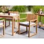 Relax in comfort during long summer days thanks to this set of thickly foam padded garden chairs' seat cushions. Upholstered in a durable and low maintenance UV and water resistant fabric in a toned light grey colour, the cushions are resistant to fading and light water exposure. They can be securely tied to the chairs' backrest to prevent slipping, ensuring a comfortable seating experience.