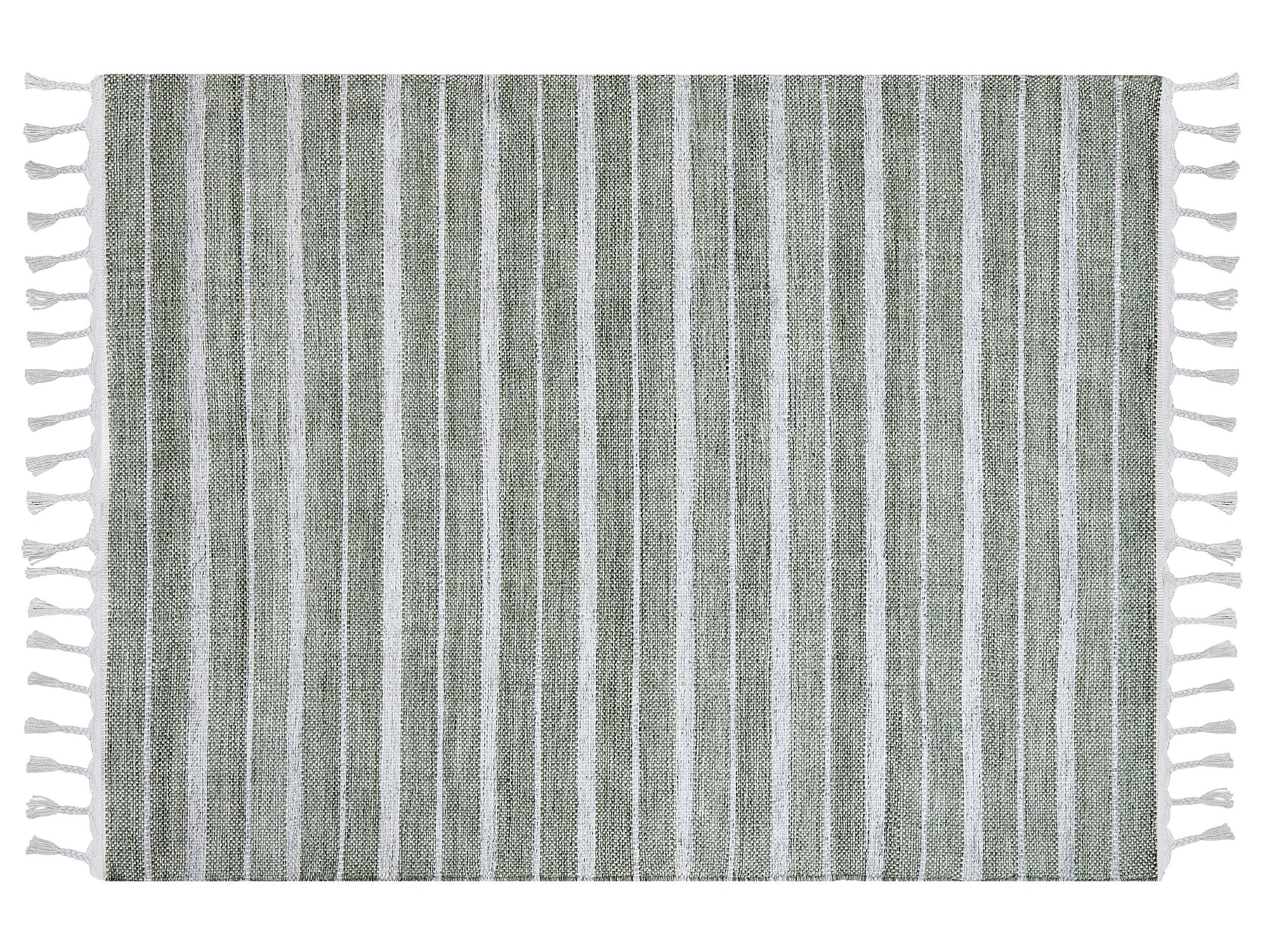Classic colours and basic design are what make this rug a universal yet stylish accessory to every type of interior. Handwoven from fully recycled materials, this rug is not only unique but also environmental friendly. Thanks to the material composition, it can be used indoor as well as outdoor. Put it either in your living room, patio or a hallway to enjoy this basic addition. Details: Color: Green, White. Main material: Synthetic Material. Material Composition: 100% Polyester Weight: 2.9 Assembly: Does Not Require Assembly
