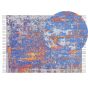Add some extra cosiness to your room with this lovely, handwoven rug. It has a pleasantly soft pile and works well in a sofa corner or styled next to the bed. The abstract pattern of blue and orange is sure to turn eyes and liven up any decor. For all modern and contemporary spaces, this rug makes a stunning accessory, wherever it’s styled. Details: Color: Multicolour, White, Blue, Orange. Main material: Polyester. Additional material: Cotton. Material Composition: 10% Cotton, 90% Polyester Weight: 3.3 Assembly: Does Not Require Assembly