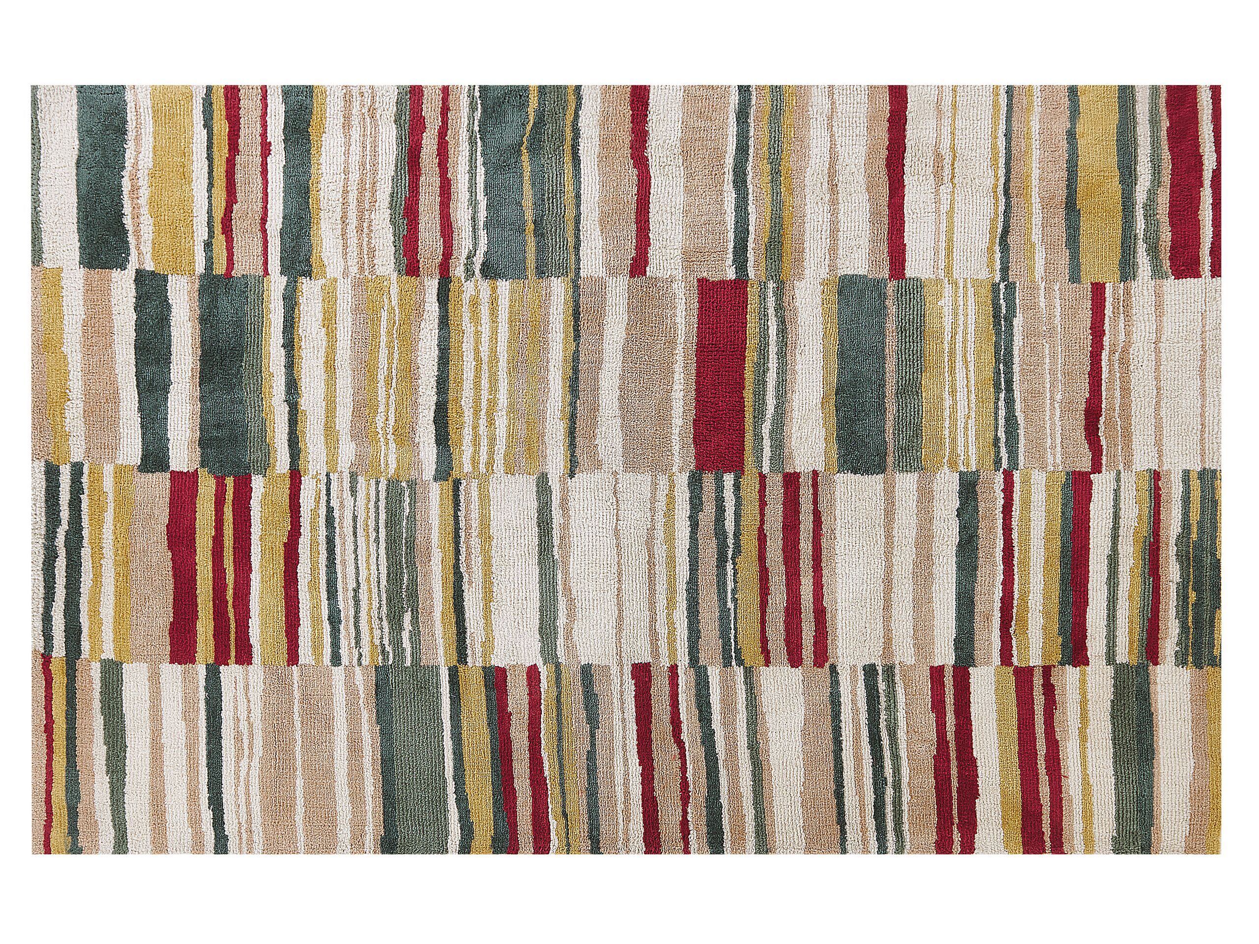 This area rug is a great way to bring a dash of colours into your home. Modern striped pattern combined with high-quality tufted polyester fabric makes it the perfect accessory for bedroom, living room or even dining room. The wonderfully soft short pile carpet is suitable for use with underfloor heating and can be combined with all living styles, but works exceptionally well in a traditional, modern or contemporary interiors. Details: Color: Multicolour, Brown, Red, Beige. Main material: Polyester. Material Composition: 100% Polyester Weight: 8 Assembly: Does Not Require Assembly
