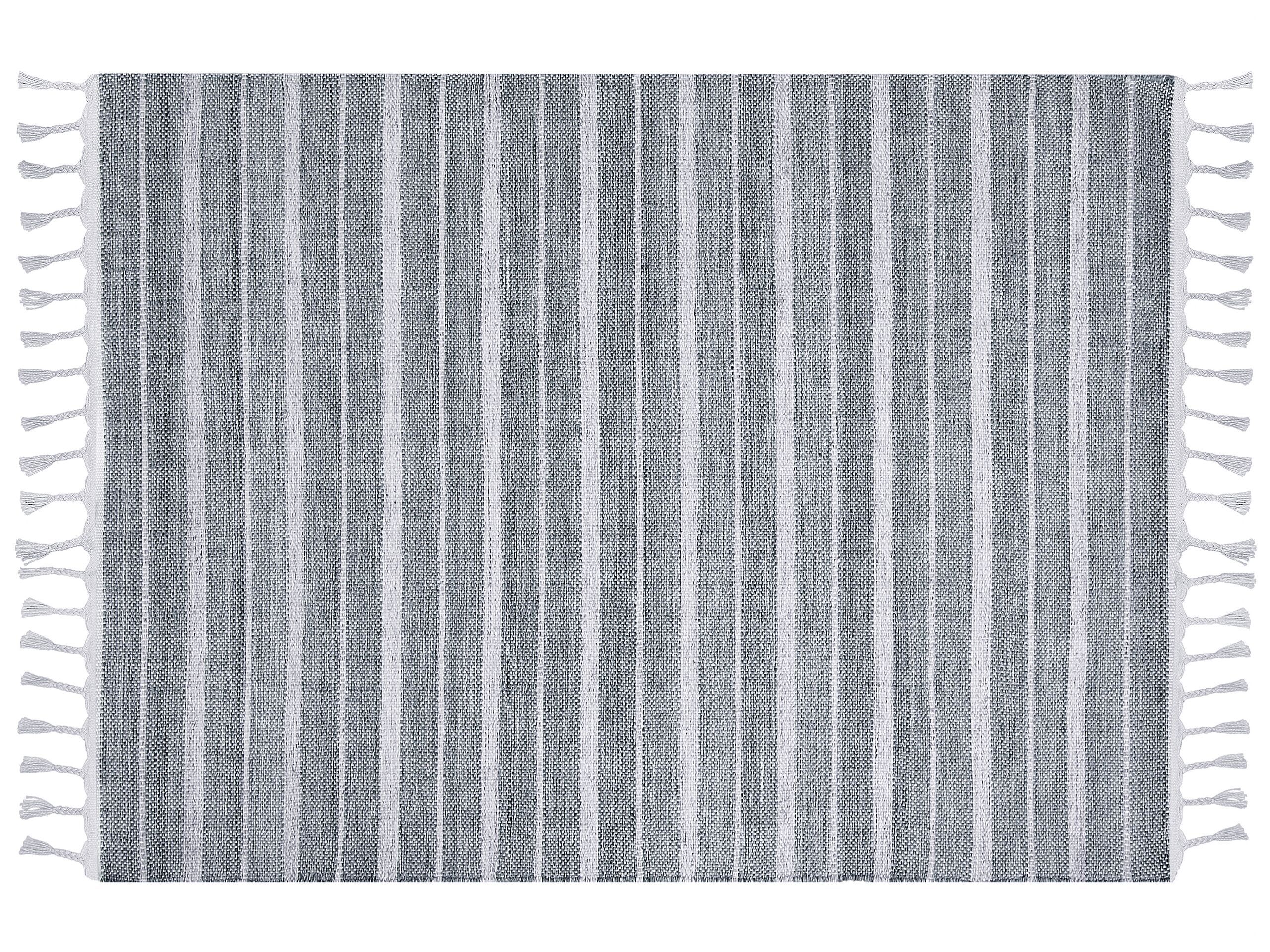 Classic colours and basic design are what make this rug a universal yet stylish accessory to every type of interior. Handwoven from fully recycled materials, this rug is not only unique but also environmental friendly. Thanks to the material composition, it can be used indoor as well as outdoor. Put it either in your living room, patio or a hallway to enjoy this basic addition. Details: Color: Grey, White. Main material: Synthetic Material. Material Composition: 100% Polyester Weight: 3.2 Assembly: Does Not Require Assembly