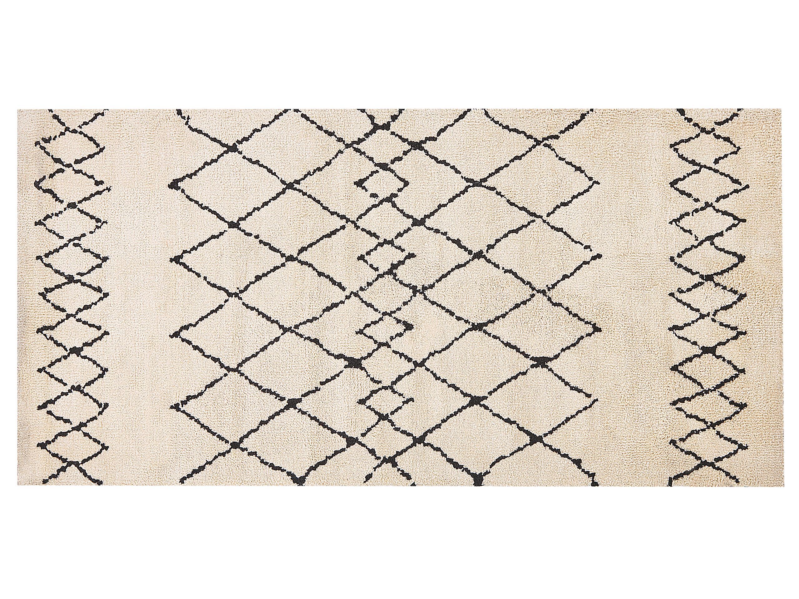 Bring warmth to your living areas with this modern rug. Its geometric pattern in black quickly draws attention, elevating the piece to be a focal point of any room. Thanks to the beige colour, it perfectly fits modern interiors, but can work just as well in rustic or country-inspired areas. Details: Color: Beige, Black. Main material: Polyester. Material Composition: 100% Polyester Weight: 3 Assembly: Does Not Require Assembly