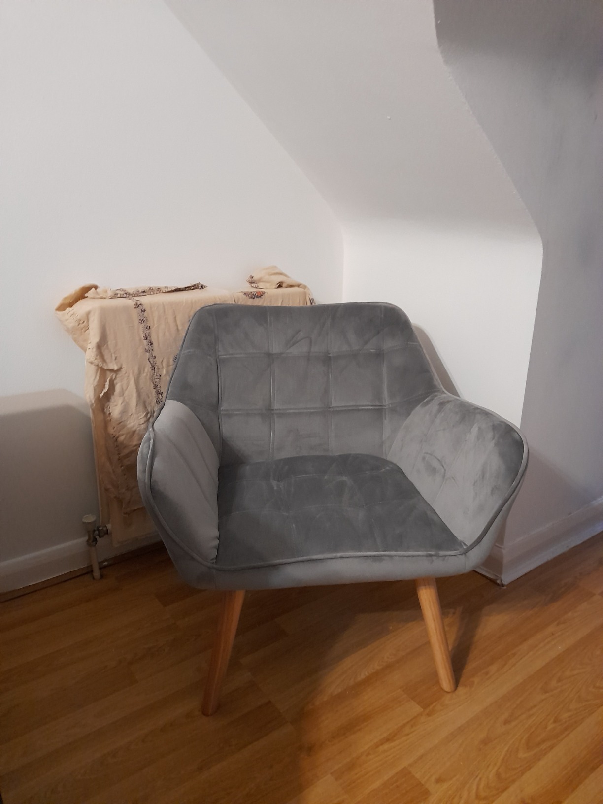 Armchair Accent Chair Wide Arms Slanted Back Padding Iron Frame Wooden Legs Home Bedroom Furniture Seating Grey
