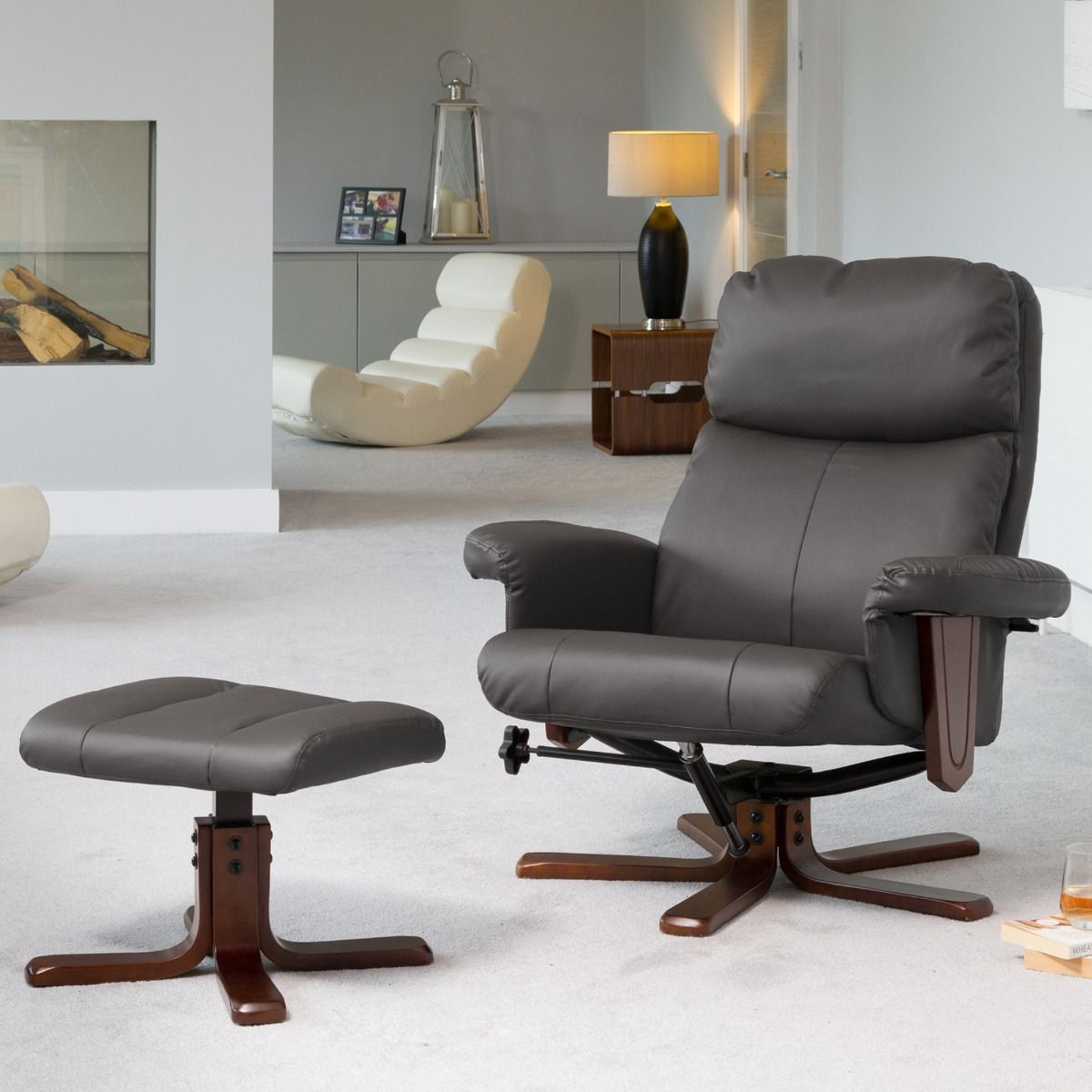 Armchair - ELEVARO Leather Swivel Recliner Chair with Stool - Grey