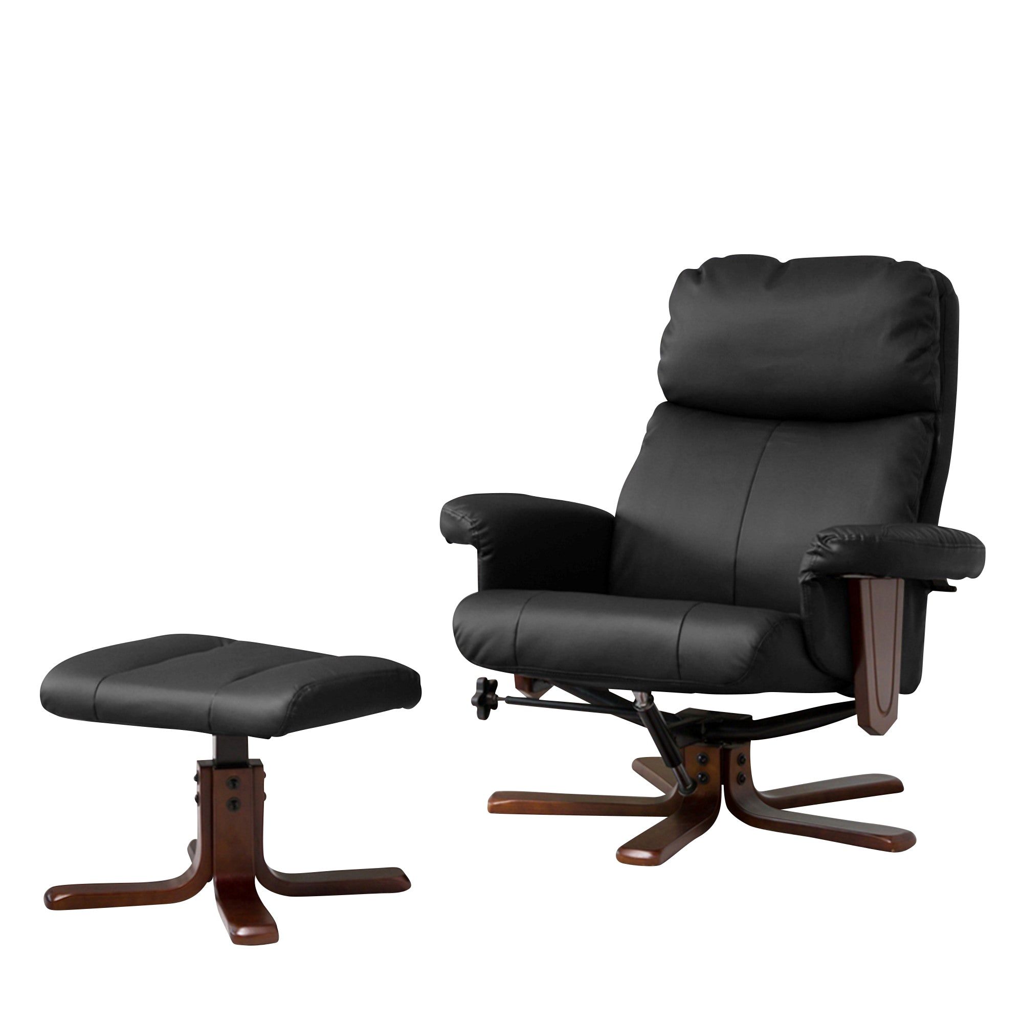 Armchair - ELEVARO Leather Swivel Recliner Chair with Stool Heated Massage - Black