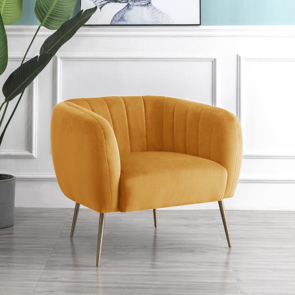 Armchair - LUMETTA Velvet Fabric Chair - Yellow