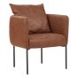 Add some retro-style elegance to your space with this armchair. It is upholstered in a durable faux leather material and features legs crafted from high-quality iron that provides stability. Additionally, the armchair comes equipped with a backrest cushion that ensures extra comfort. The piece will look great both in modern and more traditional interiors.