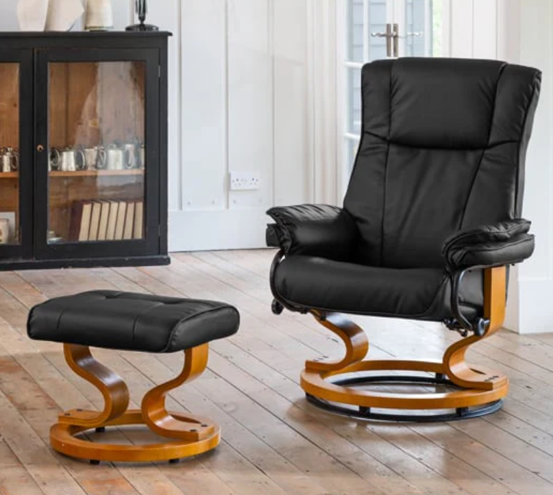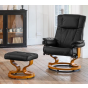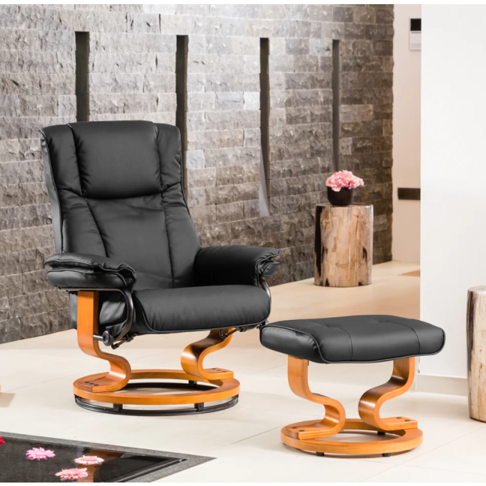 Armchair - MOBELUX Leather Swivel Recliner Chair with Stool - Black