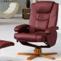 Armchair - REVOLUX Leather Swivel Recliner Chair with Stool and Heated Massager - Burgundy