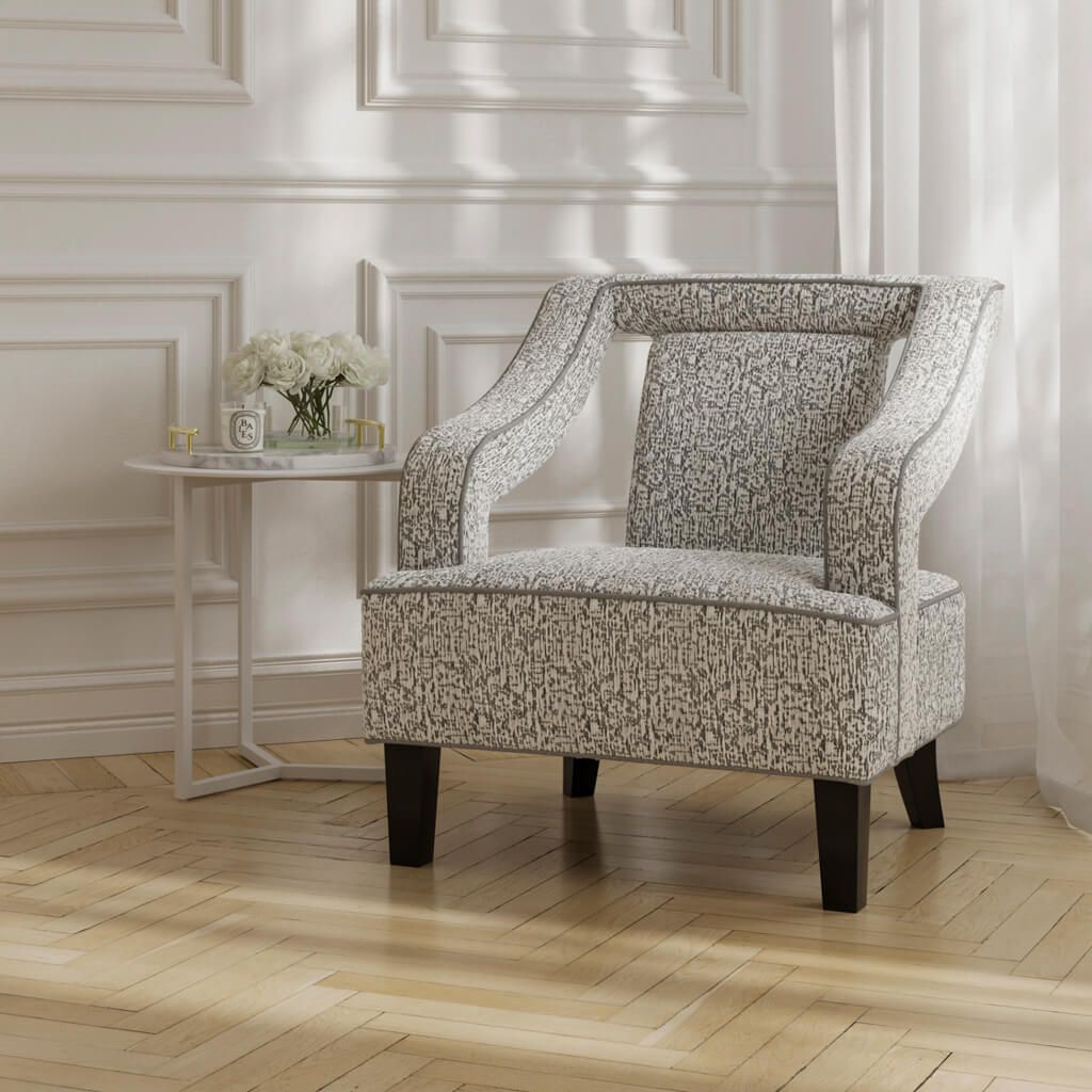 Make a statement in your living space with the SOFI Elephant Accent Chair, exclusively offered by Home Done's furniture collection. This stylish chair boasts a unique elephant grey finish, textured chenille upholstery, and a sturdy rubber wood frame. Perfect for adding a touch of sophistication and elegance to your room.