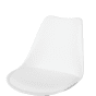 This practical desk chair is guaranteed to refresh your office space with its clean design. The ergonomically curved seat gives ultimate comfort and is made from a hard-wearing synthetic material, with the seat cover in faux white leather upholstery. Its robust chrome metal frame and legs give durability and ensure stability. The chair swivels and has a gas lift enabling height adjustment. It also features floor protection caps to prevent damage to flooring. This chair would work well in Scandinavian, retro or modern style interiors. Details: Color: White, Black, Silver. Main material: Faux Leather. Additional material: Faux Leather, Foam, Nylon, Polypropylene. Material Composition: 100% PU Leather Weight: 5 Assembly: Full Assembly Required Weight Capacity: 100 Seat Height: 45-55