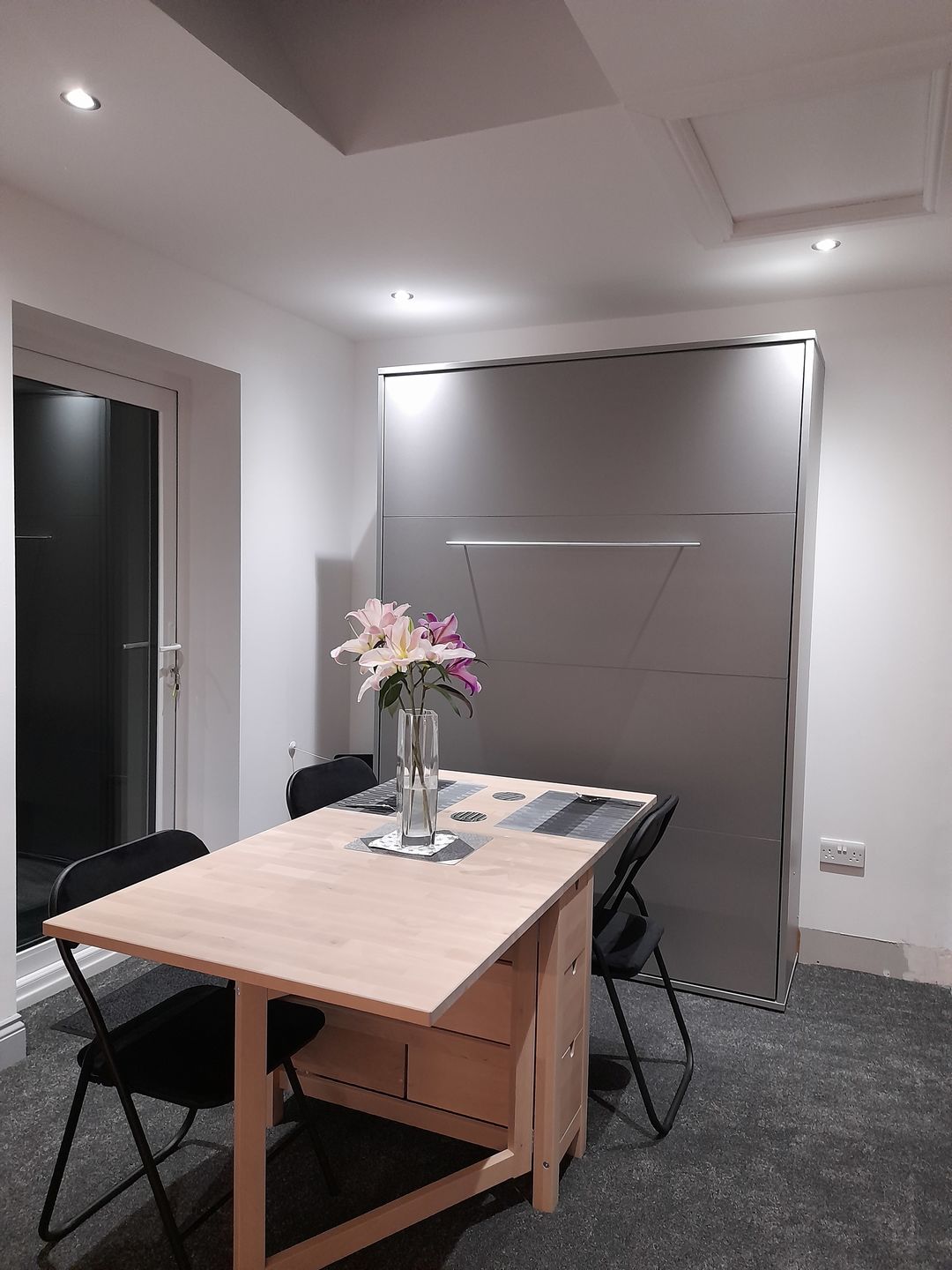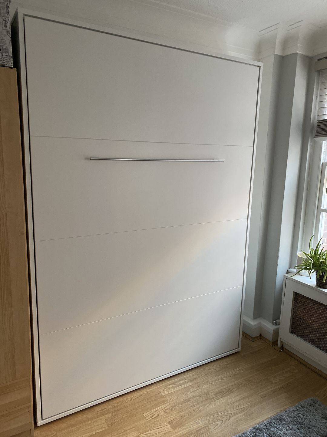 Made from the finest quality of solid laminated board, the CP-01 vertical wall bed is a practical solution for houses with limited floor space. It is built with a locking system to secure the bed within its cabinet, preventing it from opening unless needed to. In addition, the bed is equipped with a self-holding feature, allowing it to remain still in mid-air, if left unattended. Duvet straps are also included and three colours; white matt, white gloss and grey matt are available.