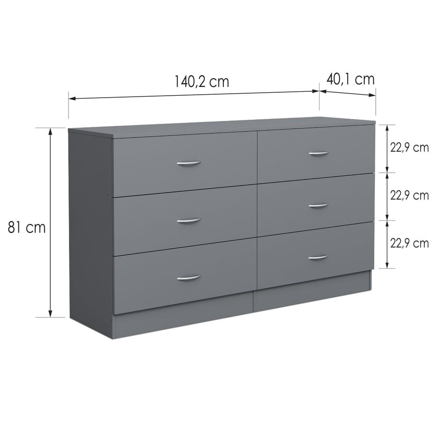 ARVELLO Grey Chest of Drawers - Extra Large-sized, 6 Drawers, Double