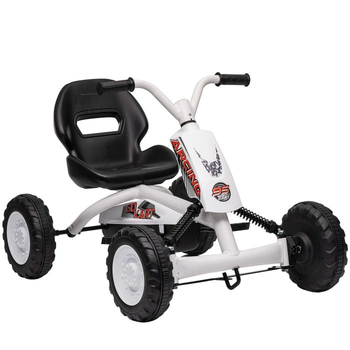 ARVENTHAL Kids Pedal Go Kart with Steel Frame, Sporty Design - White