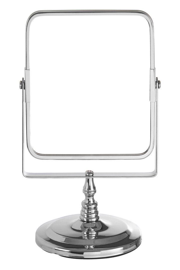 The ARVORIA adjustable double-sided table mirror features a durable chrome finish iron frame and a 2x magnifying side, making it a stylish and practical addition for the dressing table.