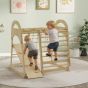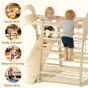 ARVYSTEN 6 in 1 Kids Climbing Frame with Slide, Monkey Bars, Gymnastics Rings, Ladder and Climbing Net for 3-6 Years - Light Wood
