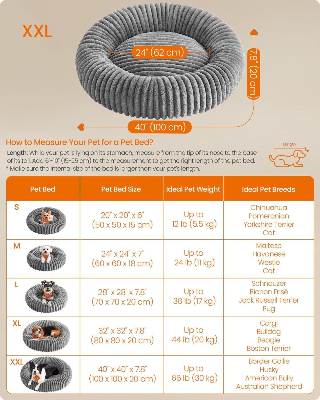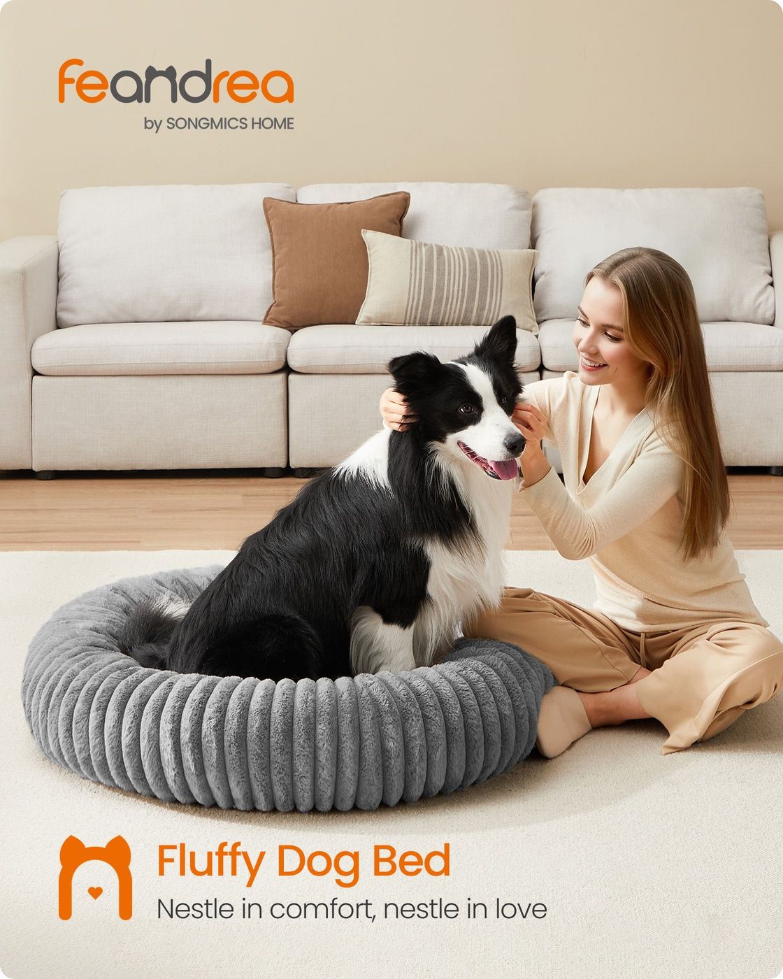 ASHBOURNEEN Dog Bed with Soft Padding for Extra Large Pet - Grey