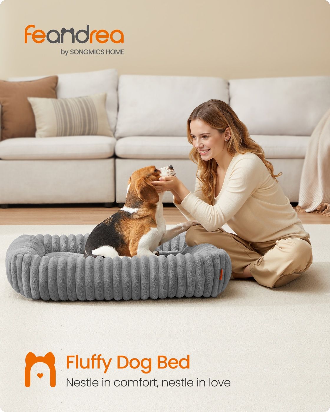 ASHBOURNEEN Dog Bed with Soft Padding for Large Dog - Grey, 68cm