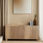 Introducing the ASHTON large sideboard, a remarkable addition to any home. Crafted from high-quality mango wood, this sideboard boasts a light brown hue with a water-based lacquer finish that enhances its natural beauty. It features a unique fluted pattern, making it a stylish and eye-catching piece.