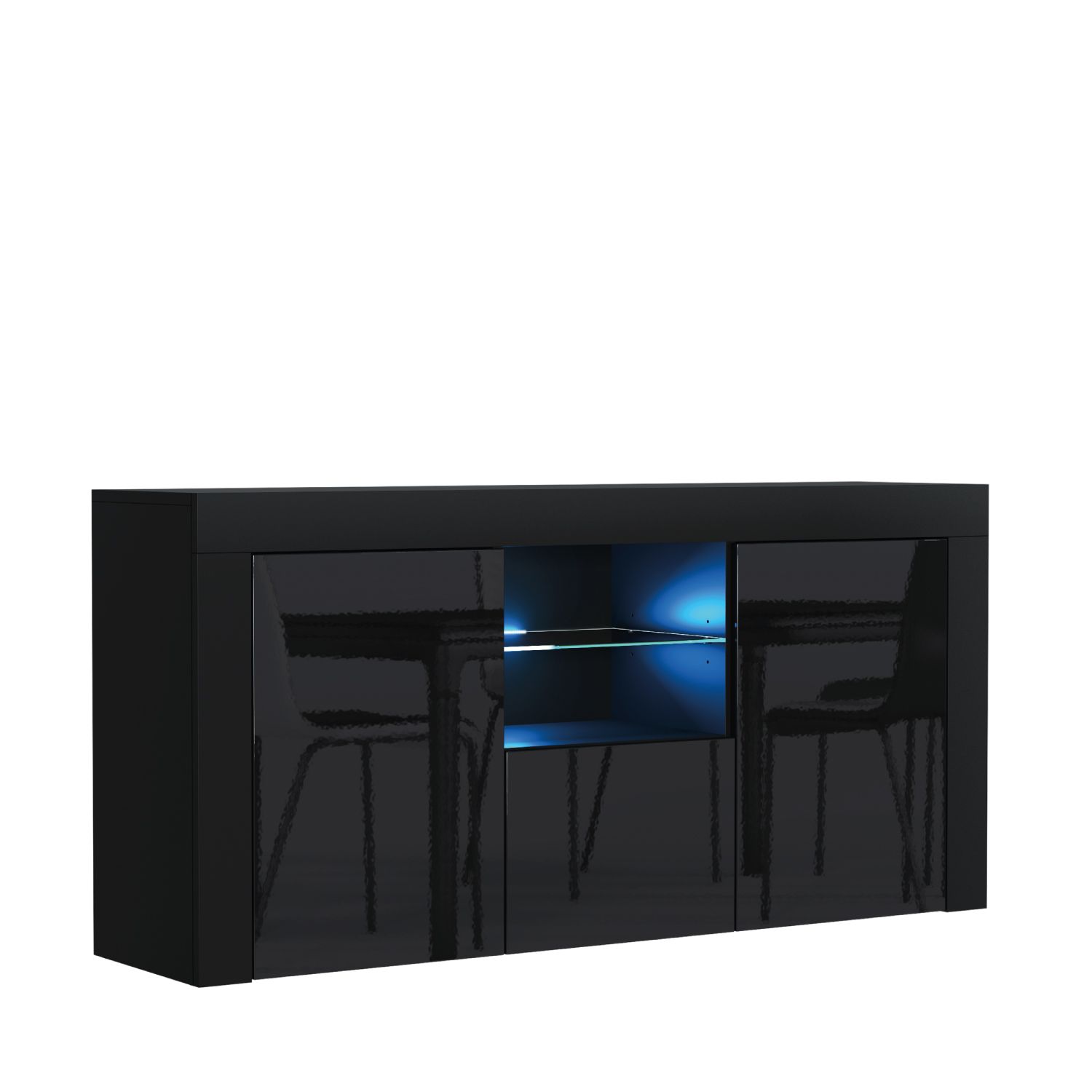 The ASSENS Sideboard strikes the perfect balance between modern design and practical storage, serving as a sleek and stylish addition to your living space. Measuring 145cm (W) x 70cm (H) x 35cm (D), this versatile piece combines contemporary elegance with everyday functionality, making it an excellent choice for any home. The design features two push-to-open doors on each side, concealing spacious compartments with internal shelves to help you stay organized and keep your space tidy. The smaller central doors provide additional hidden storage, ideal for stashing away clutter or everyday items. At the heart of the sideboard, an open compartment divided by a sleek glass shelf offers ample space for media devices, decorative items, or household essentials. Please note: the Oak with Black version features matte black doors, providing a unique and understated alternative to the glossy finishes available in other options. Available in White & Gloss Doors, White & Grey Gloss Doors, Black & Gloss Doors, Walnut & Black Gloss Doors, Oak & White Gloss Doors, Oak & Black Matt Doors, and Dark Grey & Gloss Doors.